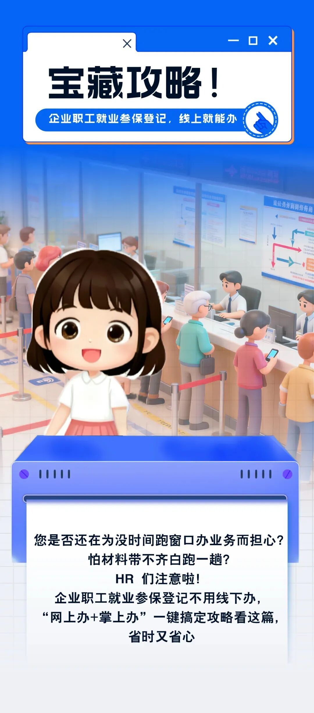 “企业职工就业参保登记” 网上办指南 第一步 登录“一网通办”(网址:https://zwdt.sh.gov.cn)平台首页,在搜索框录入“企业职工就业参保登记”,点击智能检索按钮,在搜索结果中找到该事项,点击右侧的“立即办理”,系统将自动跳转至办理页面。 第二步:维护员工信息 1、录入需办理职工的证件号码和姓名,点击“登记”。 2、若需修改联系地址、邮编、联系电话,请点击“个人联系信息”部分的“编辑”按钮进行修改。 (1)修改联系电话:点击联系电话上方的“编辑”,录入信息后点击“确定”。 (2)修改联系地址:点击默认的联系地址,点击“修改”(无默认联系地址的,可直接点击“增加”)。 3、录入时“区县”“XX路”“XX号”字段需通过输入关键字后从下拉框中点选的方式录入(如:录入上海市嘉定区,可在框中录入“嘉定”,再从下拉框中点选“上海市嘉定区”),编辑完成后点击“确定”按钮。 小贴士 若联系信息为空,或者为外省市地址,将影响就业参保的正常办理,请确保信息维护到位哦~ 4、全部信息维护到位后,点击“下一步”,跳转后点击“确认提交”即可完成地址修改。 5、页面出现以下提示即表示联系信息的修改申请成功。 完成后点击“关闭”,即可跳转回到企业职工就业参保登记页面。 第三步:录用就业参保信息 1、在“就业参保信息录入”选项卡中录入“个人序号”“就业起始日期”等劳动就业相关信息,完成信息录入后点击“下一步”。 2、确定申报信息无误后,点击“确认提交”。 3、页面出现以下提示,即表示申请成功。 如继续办理其他职工的就业参保登记手续,请点击“继续受理”。 “企业职工就业参保登记” 掌上办指南 第一步 企业用户先登录“随申办企业云”APP,点击屏幕左下角【为企服务】。 第二步 先点击左侧【社会保障】,再点击右侧【企业职工就业参保登记[新办]】。 第三步 进入“校验身份”页面,分别填写职工的“姓名”“证件号码”,核对无误后点击【确认提交】。 第四步 进入“填写资料”页面,在“就业参保信息录入”栏目进行相关项目申报。其中“就业起始日期”“合同开始日期”默认申请当日,可修改;“用工形式”默认“全日制”,线上申请不可修改;其他项目根据实际情况进行选择。 第五步 确认无误后,点击屏幕下端【确认提交】。 第六步 系统弹窗提示校验结果,点击【确认】后,页面提示“提交完成”,即为申办成功。点击【操作完成】,可继续申办其他业务。 图片部分由AI辅助生成