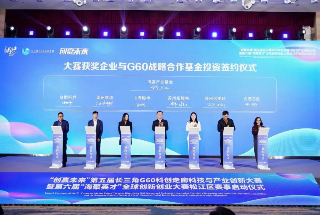 启动仪式现场,海富产业基金作为G60科技成果转化基金管理人,与苏州纽姆特纳米科技、苏州亿麦矽半导体技术、湖州胜纯应用材料、合肥芯胜半导体、合肥科烨电物理设备制造、上海韵申新能源科技等多家大赛获奖企业集中签订基金投资协议,一批成长型科创企业获得精准资本赋能。