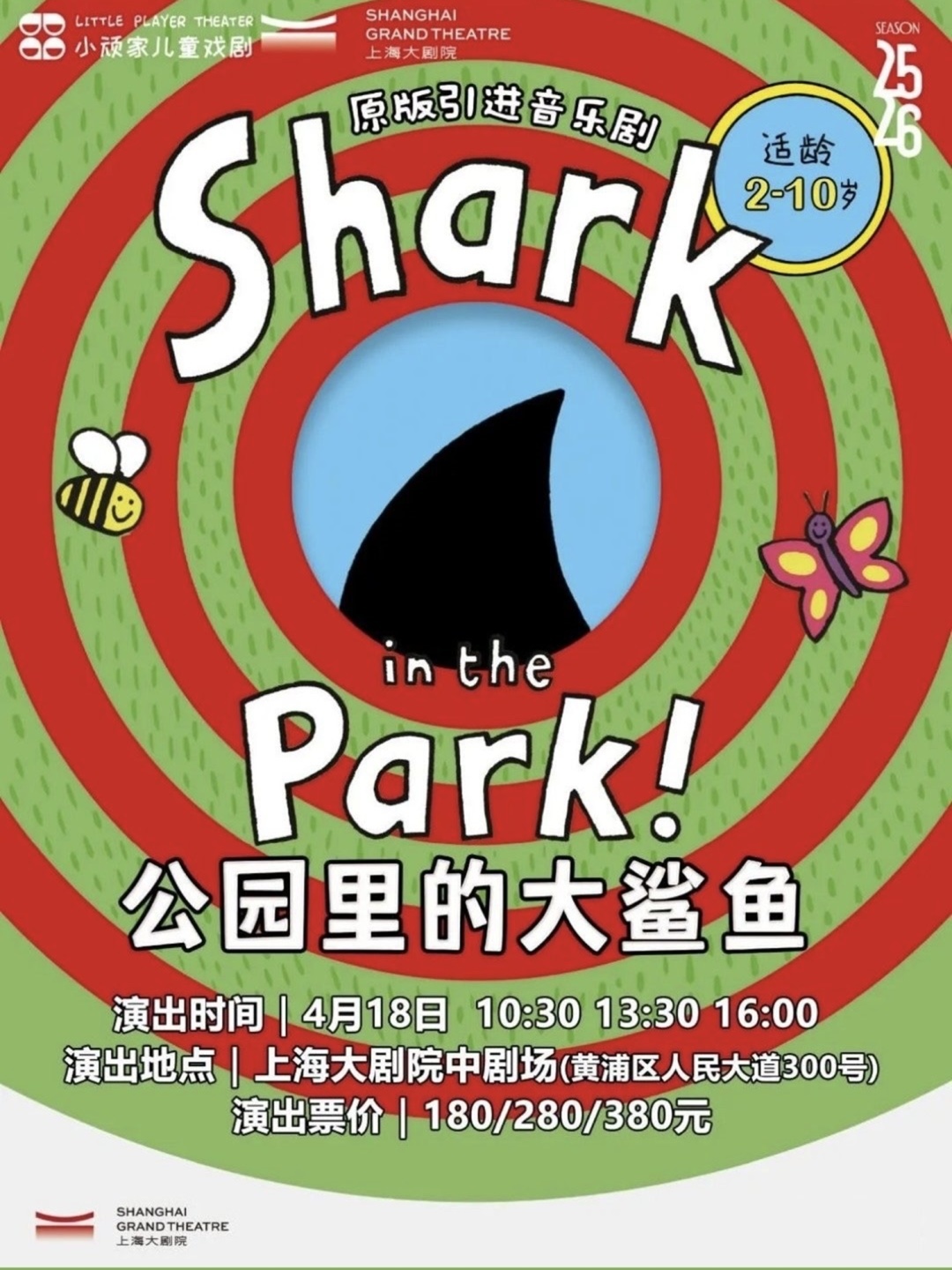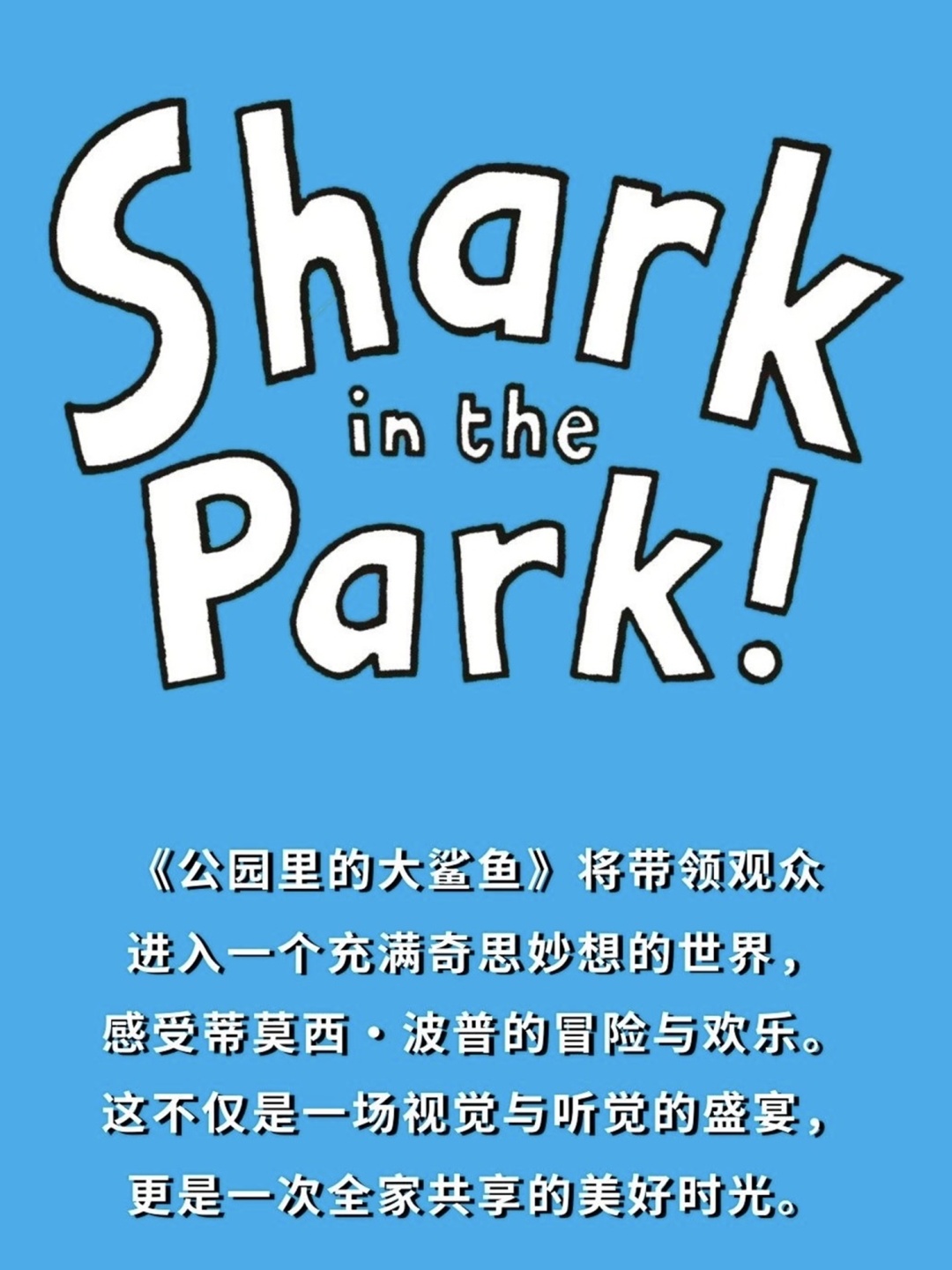 音乐剧《公园里的大鲨鱼》是由英国鬼才童书作家尼克·沙拉特创作的全球畅销儿童图画书Shark in the Park系列改编,深受全球儿童喜爱。如今,被改编成音乐剧,2025年首轮演出场场火爆,观众给予无数好评!2026再次回到上海,为小观众们呈现一个充满欢乐与惊喜的舞台冒险体验!