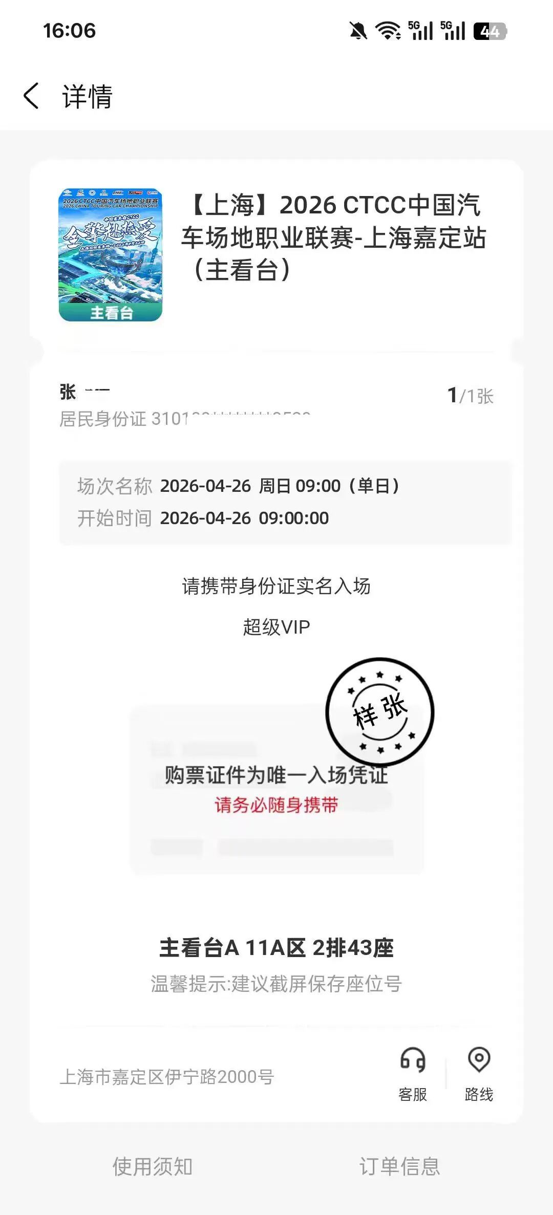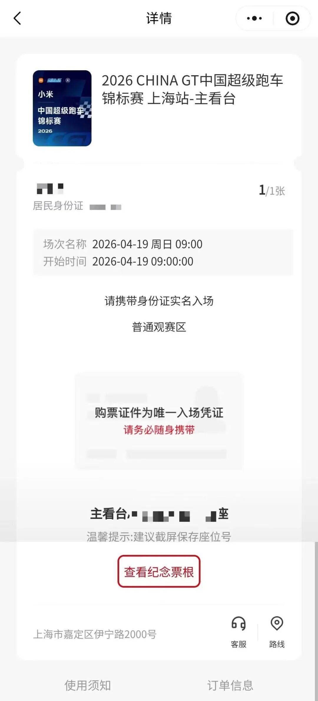 消费者凭对应赛事活动电子票页面