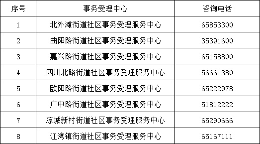 虹口区各街道社区事务受理服务中心电话如下: