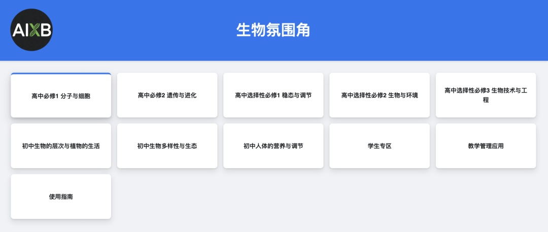 近日,全国首个系统覆盖初、高中生物学全套教材的AI交互式学习平台“初高中生物学氛围学习空间”正式上线,官网为http://bio-vibe.com.cn。