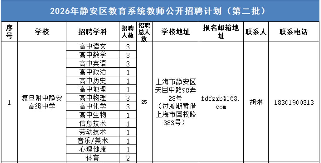 王铁桦,男,1966年1月生,正高级教师,上海市物理特级教师,为复旦大学附属中学常务副校长,曾任上海市松江二中校长、上海交通大学附属中学副校长。复旦附中静安高级中学教师招聘同时启动。信息显示,学校选址上海市静安区天目中路98弄28号,过渡期暂借国权路383号即复旦大学附属中学办学,现招聘高中语文、高中数学、高中英语等学科教师25人。此前,复旦大学、静安区人民政府于2025年6月签署深化战略合作协议,提出聚焦产业创新合作、生命健康生态体系打造、基础教育、人才建设等领域,推进更深层次、更高水平的务实合作。