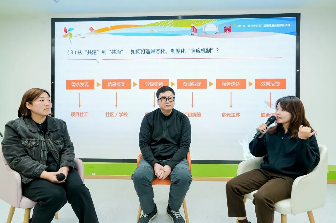 现场,东方社会工作事务所、宁跃社区发展服务中心、阳光社区青少年事务中心三家承接单位依次作成果汇报,分别围绕体制机制建设、社区一线服务、校园阵地护航三大方向,全面展示困境儿童评估、家庭支持、队伍培育、驻校服务等工作实效,系统呈现试点项目在标准化建设、专业化服务、常态化关爱上的扎实进展。