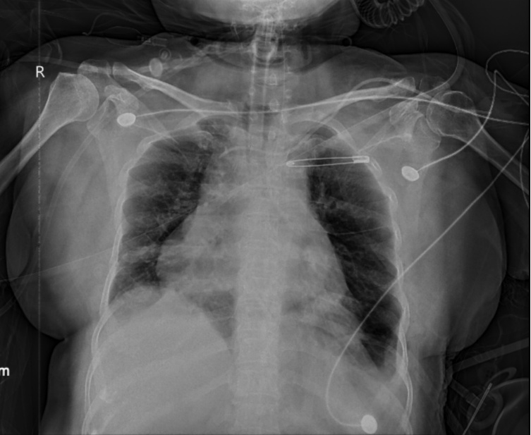 【术后胸片:左侧膈肌位置恢复,左下肺复张】