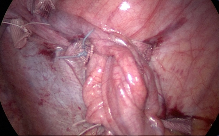 【术中照片:膈肌缝合折叠的最终效果】