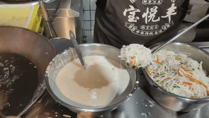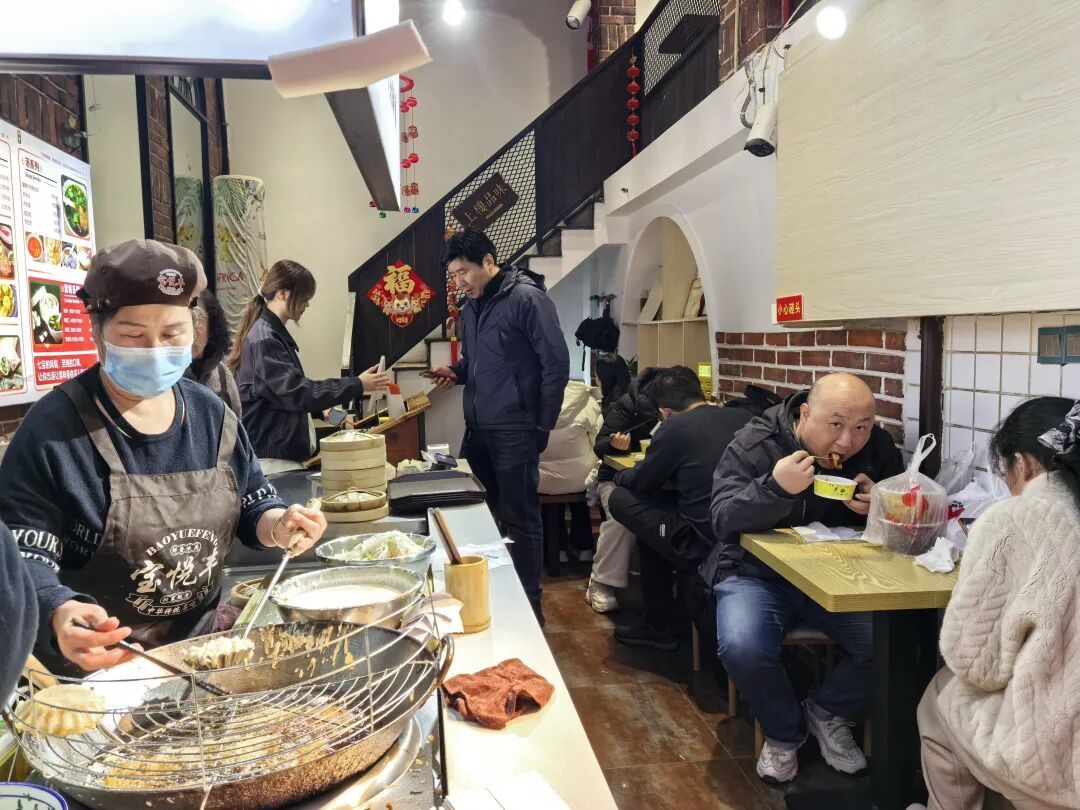 一些新想法也被“改良”进了老味道里。在宝悦丰的菜单上,不仅有咖喱牛肉粉丝汤、鲜肉笋丁烧卖等传统小吃,也有加入了香菇、荠菜或竹荪的新口味烧卖,融入当季时令菜。“我希望能以新方式来呈现老口味,不仅抓住年轻人的味蕾,也给中老年消费者不一样的体验。”邹连侠为店内小吃设计了卡通形象,还赋予了它们新名字:油墩子是“金墩墩”,烧卖叫“嘟嘟福气包”,馄饨则被称为“元宝咕噜馄饨”。