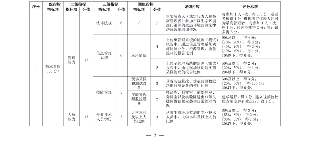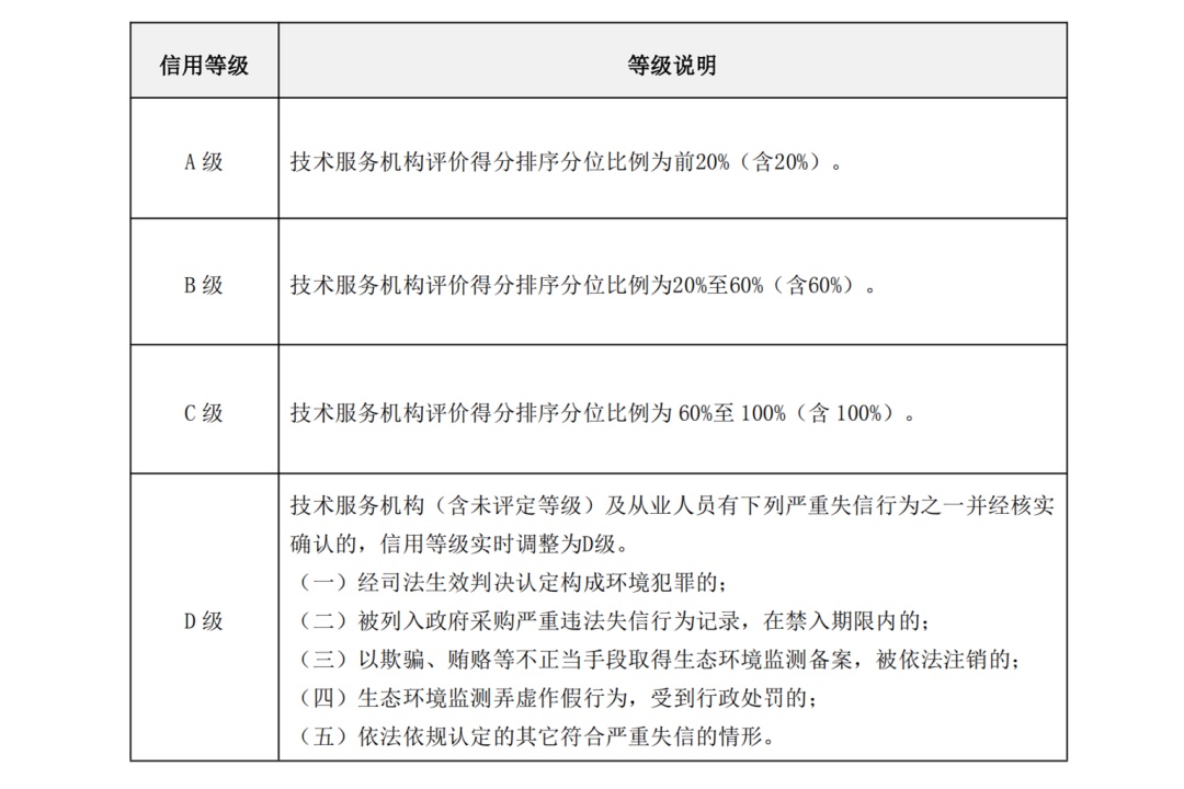 上海市生态环境监测技术服务机构(综合监测类)等级对照表