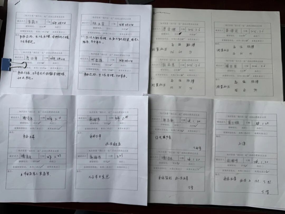 为把服务做细做实,居委为每位老人建立详细台账,志愿者上门探访时细致记录需求、反馈情况,对老人的了解堪比亲人,用真心、爱心、热心、关心、细心的“五心”服务筑牢帮扶根基。