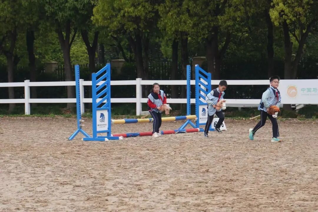随后,丰富有趣的体验环节依次展开。在马术表演区,专业骑手与骏马默契配合,优雅又矫健的身姿,让同学们近距离感受到马术运动的独特魅力。模拟马术游戏区更是热闹非凡,大家手持“hobbyhorse”奔跑跳跃,欢声笑语不断。