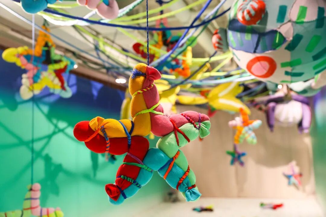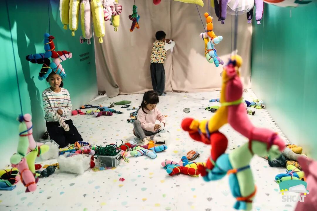 在这里,家长是与孩子并肩共创的伙伴。一位爸爸坐在地上和女儿一起塞棉花做“袜子怪”:“小时候没玩过这些,现在补课了。”艺术季还将推出“小小艺术导览员”,经过艺术家和剧场导师的启发式培训,让孩子们用自己的视角带领其他家庭探索展览,让导览成为一场由孩子发起的想象力接力。