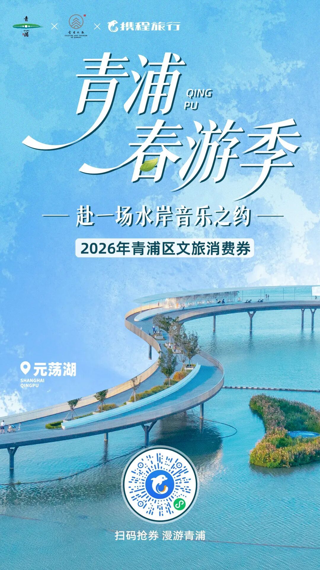 春风又绿江南岸 青浦的画卷正徐徐展开 这里,是上海的水乡秘境 古桥流水、粉墙黛瓦诉说着千年风韵 这里,是都市的田园花园 繁花似锦、绿意盎然焕发着勃勃生机 寻梦江南,何必远行? 青浦,就在你身边 静待一场春日邂逅 封面图源丨携程官方相册 2026年4月18日至5月17日 上海市青浦区文化和旅游局 携手携程旅行重磅推出 2026年青浦区文旅消费券 最高立减360元! 消费券覆盖酒店住宿、景区门票、 精品线路三大核心领域 超值优惠助你轻松玩转青浦春日风光 福利每日限量发放,先到先得 快来开启你的高性价比青浦春日之旅 赴一场水岸音乐之约吧! 2026年4月18日至5月17日 首日(即4月18日)早上10:00发券 后续每天0点发券 携程旅行APP/小程序 阶梯满减优惠 最高减360元! 酒店住宿、景区门票、线路产品 酒店住宿: 满300元减60元 满600元减120元 满900元减270元 满1200元减360元 景区门票: 满20元减6元 满50元减15元 满100元减30元 满200元减60元 线路产品: 满200元减40元 满500元减100元 满800元减160元 1️⃣活动期间同一批次内,同一用户每种消费券仅限领取/使用一次。 2️⃣酒店住宿消费券领取后需在有效期内使用,过期作废。 3️⃣消费券每日限量发放,先到先得! (1)酒店住宿:打开携程旅行APP,首页搜索“青浦消费券”关键词,即可进入活动页面。消费券每日发放数量有限,先到先得,点击“去抢券”,领取成功即可使用; 或通过首页“酒店”频道,定位“青浦区”,选择带有“青浦消费券”标签的酒店住宿产品,进入产品详情页领用消费券。 领取消费券后,在APP预订下单,符合本次消费券参补要求的酒店住宿产品,将直接抵扣消费券优惠金额。 (2)景区门票&线路产品:打开携程旅行APP,首页搜索“青浦消费券”关键词,即可进入活动页面直接下单,享受相应的立减优惠; 或通过首页“门票”频道,定位“青浦区”,点击查询进入产品列表页面,选择带有消费券标签的门票或线路产品,直接下单享受优惠。 (具体规则详见活动页面) 领好超值消费券 如何玩转青浦的春日魅力? 以下特别精选四条主题线路 囊括雅韵寻踪、烂漫花海、 动感乡村与古镇揽胜 邀你深度体验青浦的多元风情 一起来看看吧~ 踏上这条线路,宛如走入一幅流动的江南水墨画。起点蟠龙新天地,其街区的设计风格巧妙融合传统水韵与现代活力。在这里,春日里花船巡游、鸬鹚捕鱼生动上演,周末的“蟠龙水集”更是春日风物的聚集地,非常值得打卡;接着探访千年章堰古村,青瓦白墙、藤蔓溪流,时光仿佛在此凝固。 图源丨携程官方相册 步入青溪园(知道书院),在繁花曲水间寻一处雅座,品茗阅读,享受静谧时光。登临漕通水城门,白天饱览环城水系春色,夜晚沉醉于灯火璀璨的梦幻夜景。 图源丨青浦文旅 公众号、携程官方相册 这是一条为春日赏花与踏青量身定制的线路。首站重固花田里,紫色鼠尾草、金黄油菜、粉色海棠交织成绚丽花毯,拍照打卡绝佳。赵巷和睦水街,绿意繁花映衬潺潺流水,漫步其中尽享江南水街的温婉浪漫。城市旁的梅香公园,垂柳百花、碧水悠悠,轻松感受近在咫尺的春天。 图源丨青浦文旅 公众号、携程社区@齐乖多金 东方绿舟作为户外天堂,春季风筝节等活动融合非遗与亲子乐趣,是全家放飞欢乐的理想地。压轴的上海大观园,在春日花海映衬下,“红楼探春”主题活动带您步入《红楼梦》意境,漫步潇湘馆、怡红院,参与实景品读,在古典园林中沉浸式感受文学与春光的交融。 图源丨携程官方相册 想体验野趣与动感?这条线路不容错过。始于淀山湖畔的蔡浜村,粉墙黛瓦点缀在金黄花田间,构成清新宜人的水乡春色图。接着前往元荡湖,骑行或漫步于横跨沪苏的“元荡慢行桥”,将湖光潋滟、湿地葱茏的辽阔春景尽收眼底。 图源丨青浦文旅 公众号、携程官方相册 随后抵达“魔都小亚马逊”岑卜村,丛林水道密布,是体验皮划艇、桨板运动的宝藏地,多家俱乐部可选,畅享水上探险乐趣。终点东厍村,宁静村落弥漫着春日甜美气息,别忘了在“乡村客厅”点一杯特色“稻香拿铁”,为旅程画上惬意句点。 图源丨青浦文旅 公众号 沉浸于江南雅韵,这条线路是古镇与自然的双重礼赞。朱家角古镇的春日主题活动让你深度品味水乡魅力:漫步青石板街巷,尝一口地道风味小吃,体验捏面人、糖画等非遗技艺的匠心;或择一临水茶座,细品香茗间聆听婉转评弹,千年“角里”的时光在此缓缓流淌。 图源丨携程官方相册 随后移步太阳岛度假酒店,这座被绿意田园环抱的静谧绿洲,提供远离喧嚣的休憩空间,在自然气息中彻底舒展身心。漫步在横跨湖面的彩虹桥上,春风盈袖,视野豁然开朗。近赏湿地繁花似锦,远眺潋滟湖波与延绵水岸线,将青浦春日独有的壮阔与柔美尽收眼底,为水乡之行添上诗意一笔。终点“桥乡”金泽古镇,远离喧嚣,古桥流水相伴。找家临水小店,喝茶吃面,静赏烟雨朦胧,便是最地道的春日水乡慢生活。 图源丨携程官方相册、青浦文旅 公众号 春光正好,青浦正美 不妨领取2026年青浦区文旅消费券 出发春游青浦 一起漫步千年古镇 徜徉缤纷花海 体验乡村野趣 静享水岸风光 ... ... 我们,青浦见!