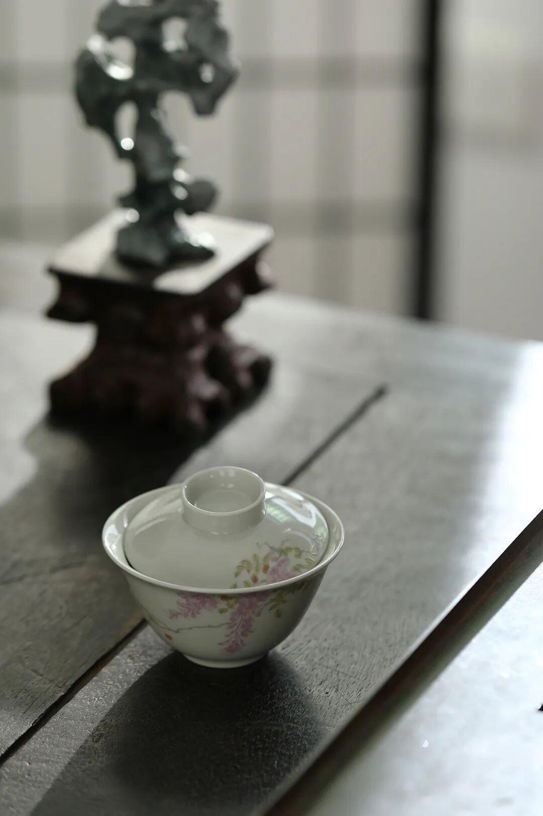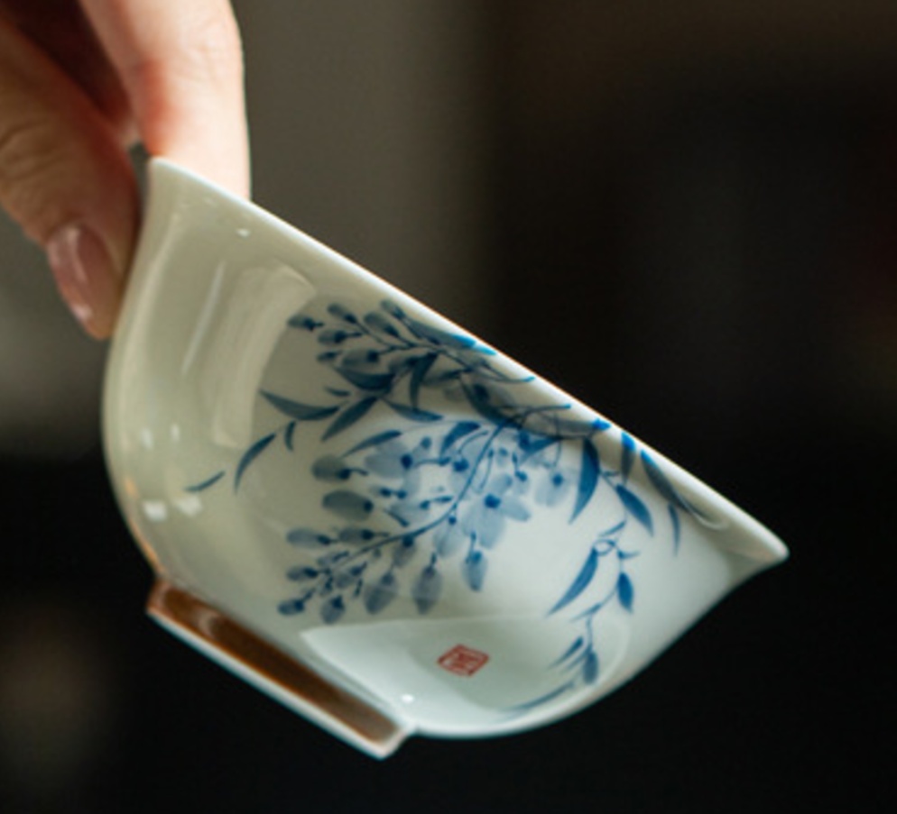 “仿古泥紫藤花”系列包含盖碗与主人杯,以景德镇仿古泥料为原料,经高温烧制而成。其中主人杯采用釉下青花工艺精心绘制,诠释江南文化与海派文化的独特韵味。