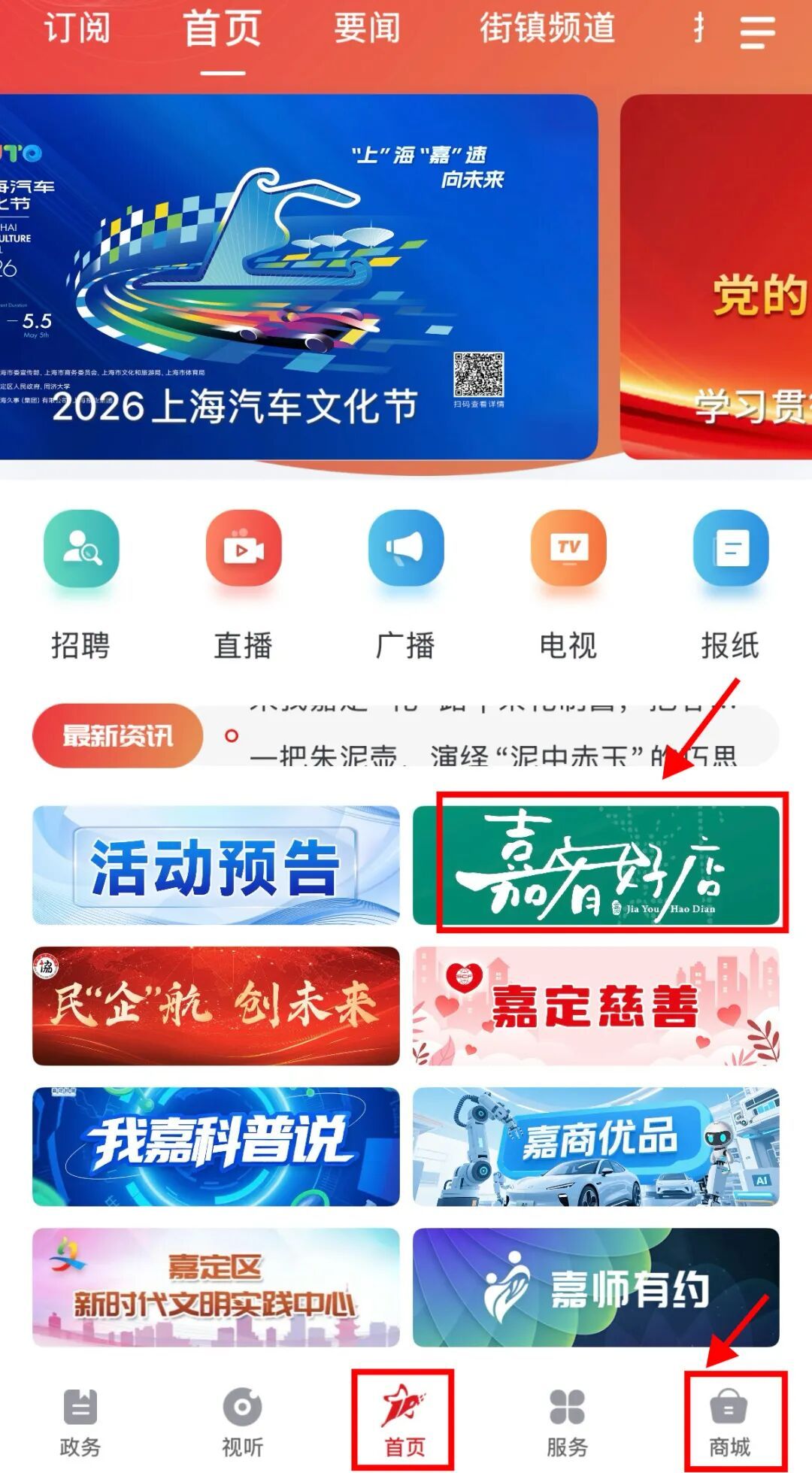 线上:下载“上海嘉定”App,进入首页,点击“嘉有好店”板块,或点击首页右下角“商城”,皆可进入“嘉有好店”。