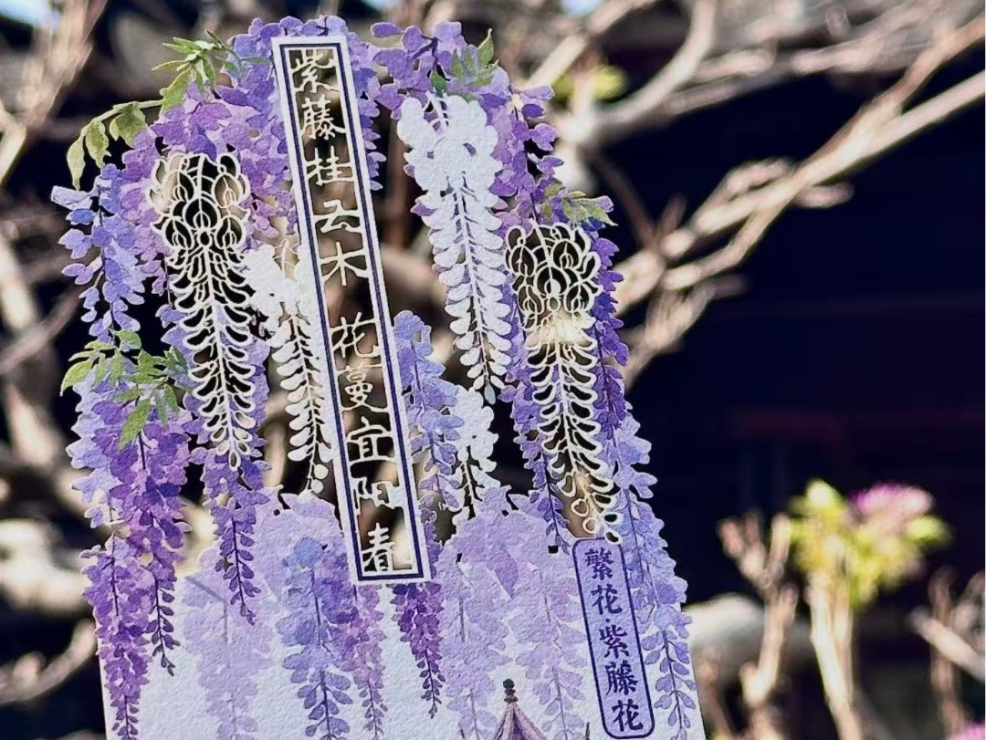 “繁花明信片—紫藤”宛如一幅挂画,可在公园随处打卡拍照;若摆放在书桌前,即可拥有“微型春日美术馆”,赏心悦目。
