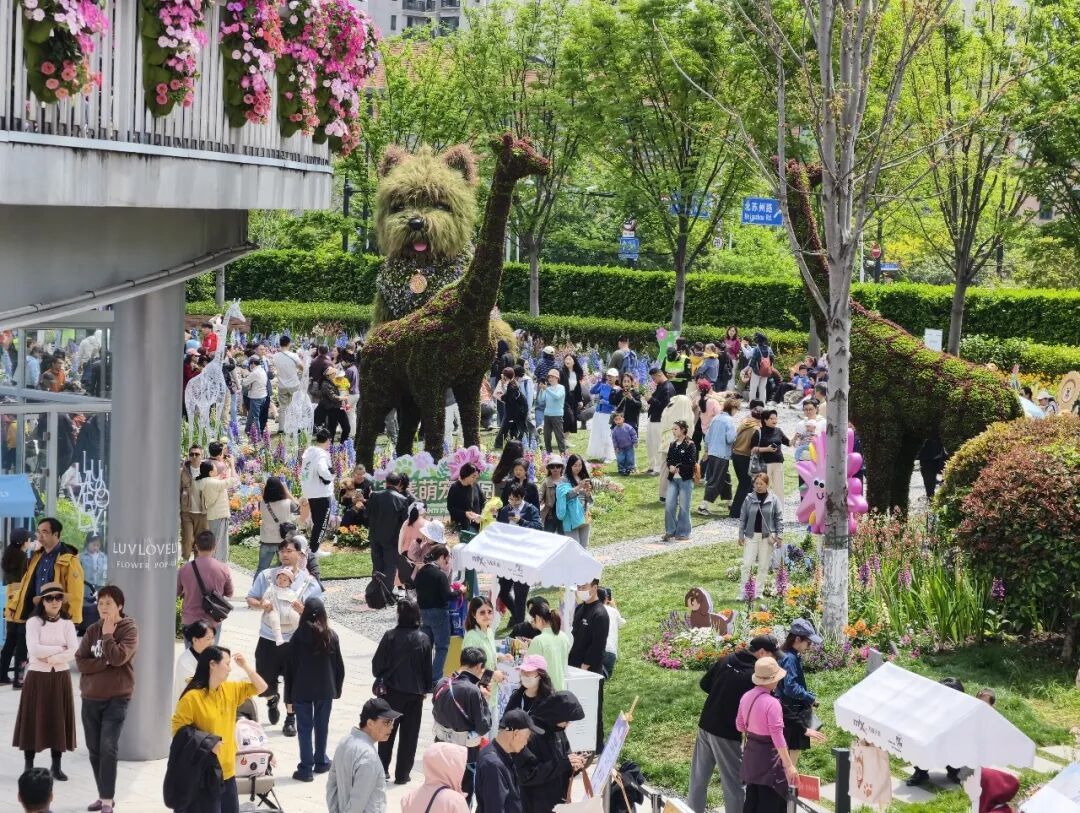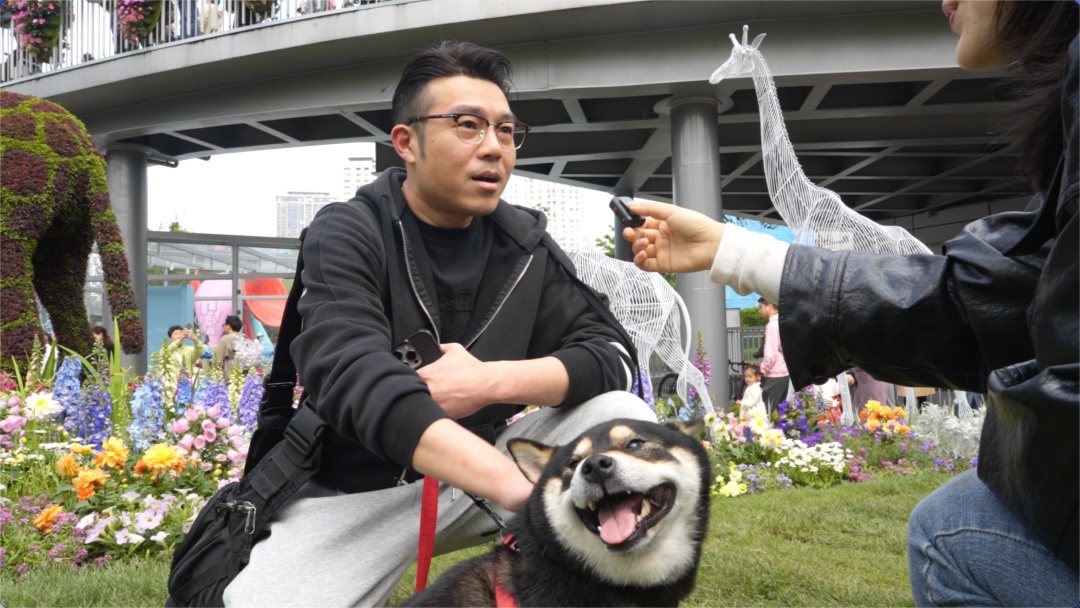 每周末都带自家柴犬“拿铁”来苏河湾万象天地遛弯的张先生则属于“收获意外惊喜”型游客。“周末都会带它来玩,本来不知道有活动,过来一看发现花很多,布置得也非常好看!”