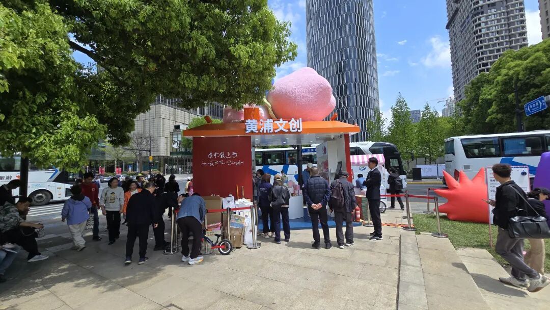 在花卉节现场,黄浦文创的摊位前排起了长队,许多市民和游客纷纷驻足购买。