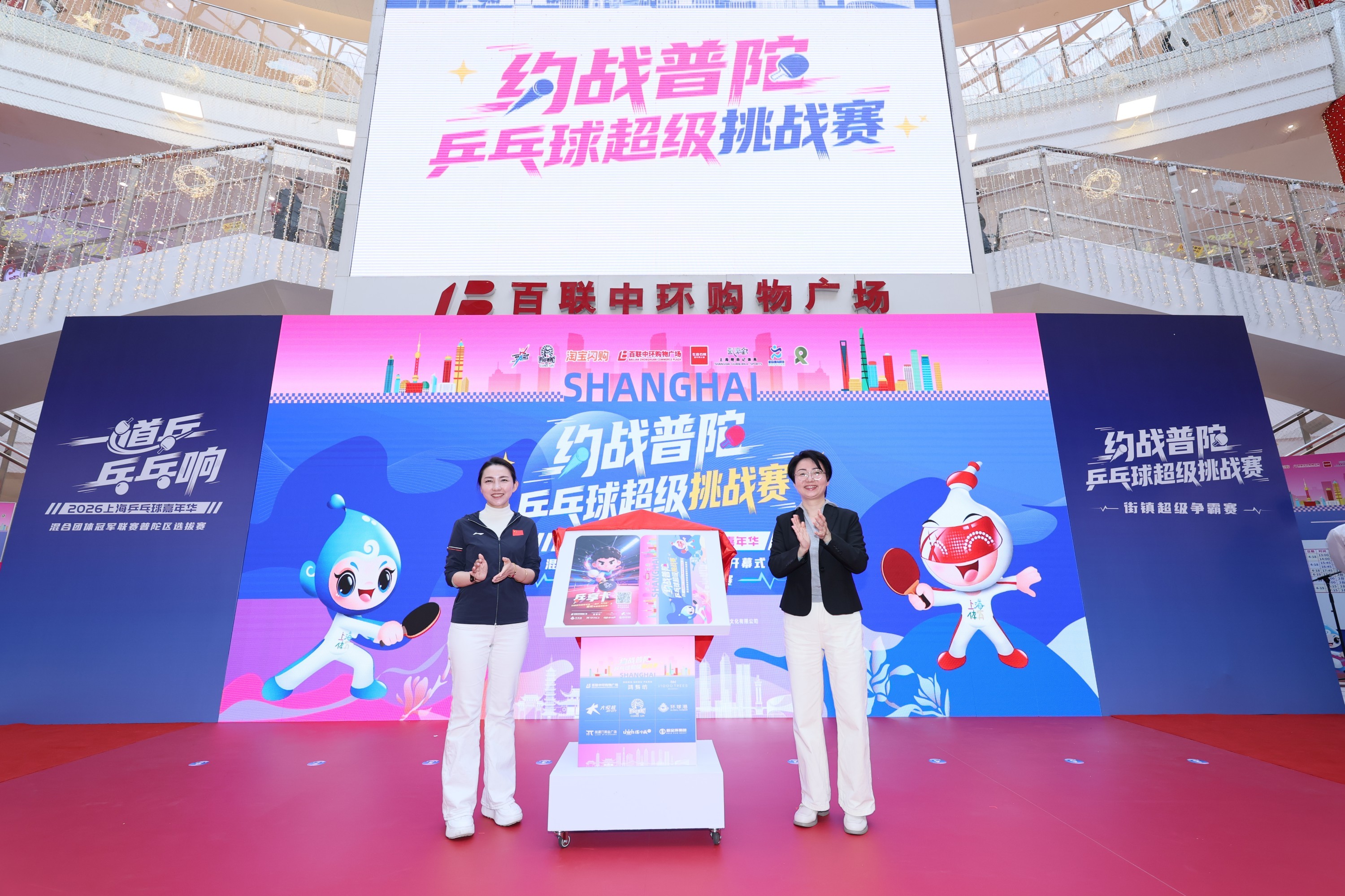 4月18日,“一道乒 乓乓响”2026上海乒乓球嘉年华普陀区预选赛开幕式暨 “约战普陀” 乒乓球超级挑战赛街镇超级争霸赛在百联中环购物广场拉开帷幕。本次赛事作为上海乒乓球嘉年华在普陀区的重要落地活动,打造了一场全龄参与、全城共享的乒乓盛宴。普陀区委副书记、区长赵亮宣布赛事开赛。上海市体育局一级巡视员宋慧,普陀区副区长王珏出席活动。