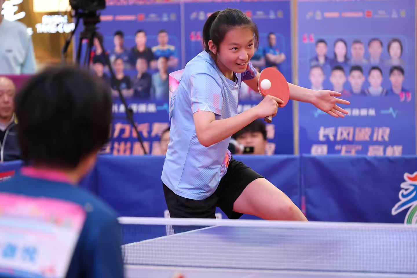 赛场之上,稚嫩面孔同样吸睛。来自曹杨骐杨队的曾迦悦今年只有12岁,练习乒乓球仅两年半,已是队中女单一号。她在赛场上毫不怯场,打出了不少精彩好球。“今天发挥不错,平时练的东西都能打出来,让大家看得尽兴。”面对普遍年长于自己的对手,这位小将心态从容,“跟大人打,压力肯定是对面更大。我们小孩没什么包袱,上去拼就对了。”