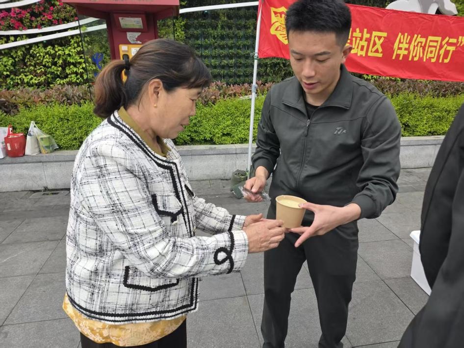 旅客们拖着行李箱停下脚步,喝口热茶、量个血压,临走时还不忘带走一份国家安全宣传折页。这正是“爱心伴你行”品牌的日常写照,没有高高在上的说教,只有站区志愿者们发自内心的“奉献、友爱、互助、进步”。