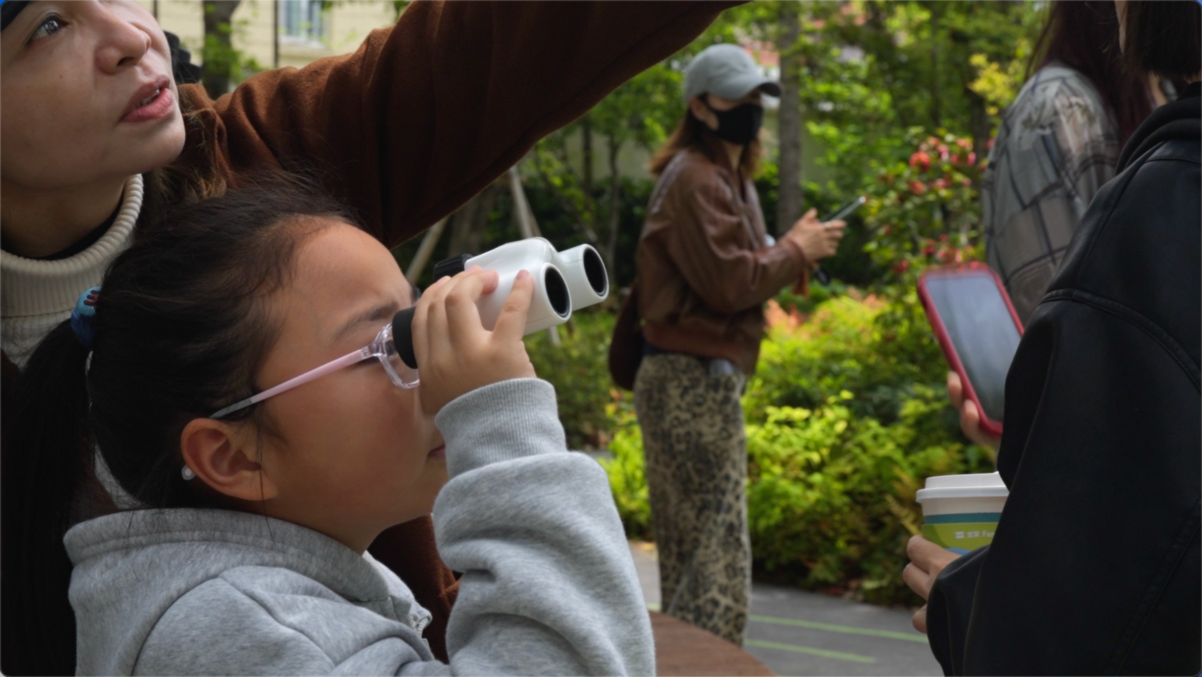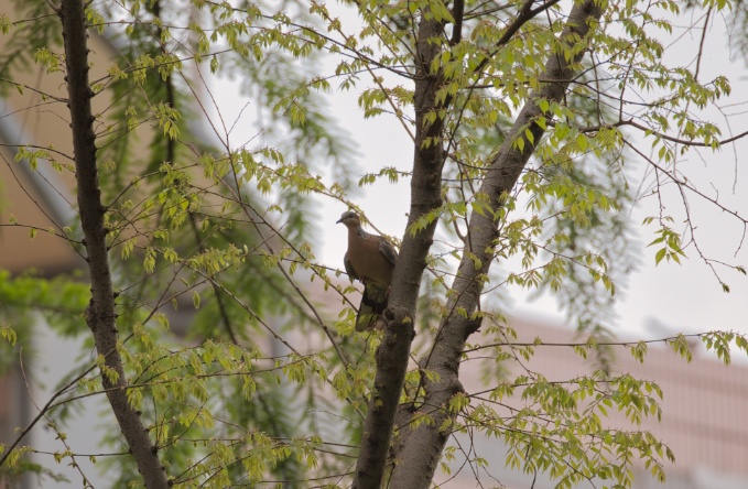 讲解结束后,市民们手持望远镜,在工作人员带领下走进花园实地观察。春日的延富花园绿意葱茏,鸟鸣声此起彼伏。一行人沿着步道缓行,很快便有了收获——乌鸫在林间栖息,珠颈斑鸠振翅高飞,麻雀在枝头叽叽喳喳地跃动。这三种城市常见鸟类,成了当天观测记录的主角。