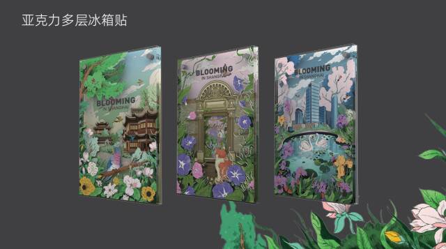 亚克力多层冰箱贴3款,以插画为画面内容并进行分层设计,立体感拉满,把春日花景藏进日常角落。