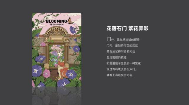 吉章数字文创与花卉节黄浦主会场深度合作,联动优秀插画师,针对黄浦区新天地太平湖、复兴公园与古城公园三大地标会场五处点位,推出了极具海派韵味的系列主题插画:《岁月留白,花香如故》《花落石门,繁花弄影》《时光如镜,花栖倒影》。