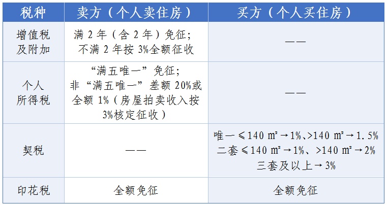 一表读懂房产交易双方税费
