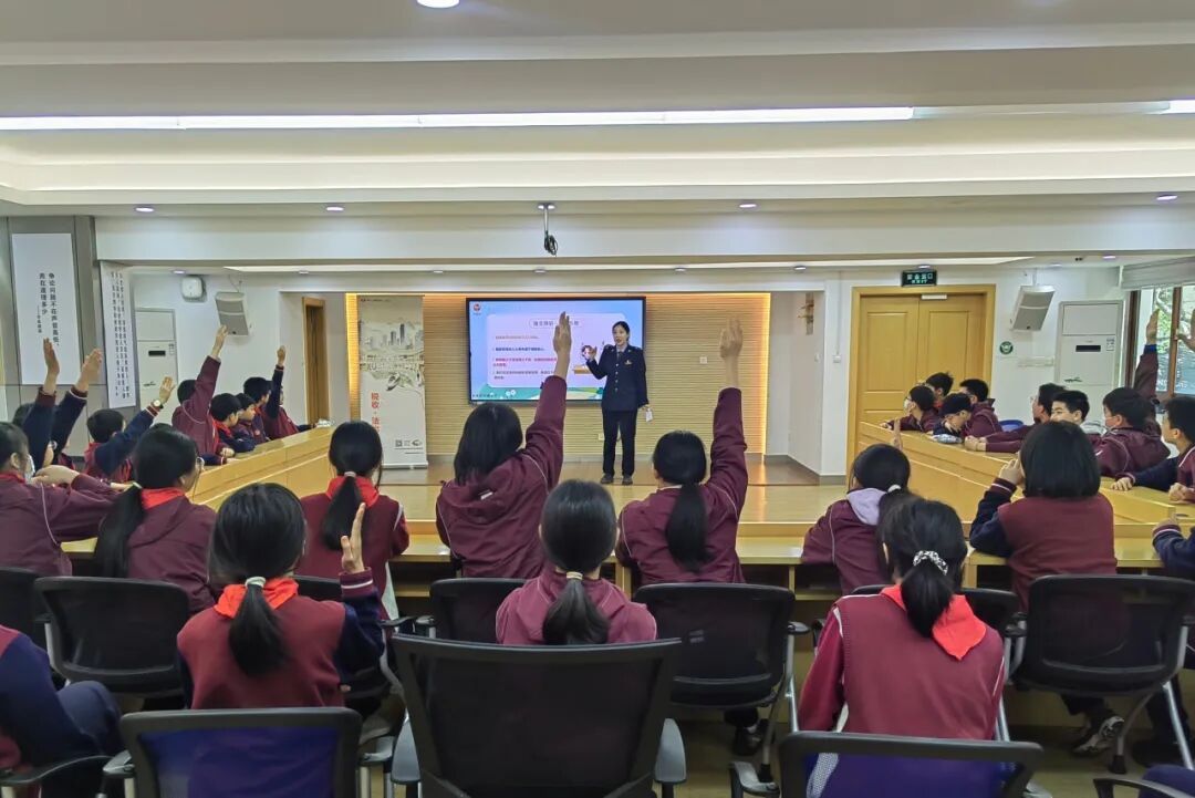长宁区税务局走进华政附中,为预初年级的师生们带来一场“趣味税收之旅”。活动以合规互动小剧场开场,通过情景剧生动演绎税法常识;随后税务干部深入讲解税收与生活的关系,并组织互动问答,在热烈的氛围中播下依法纳税的种子。