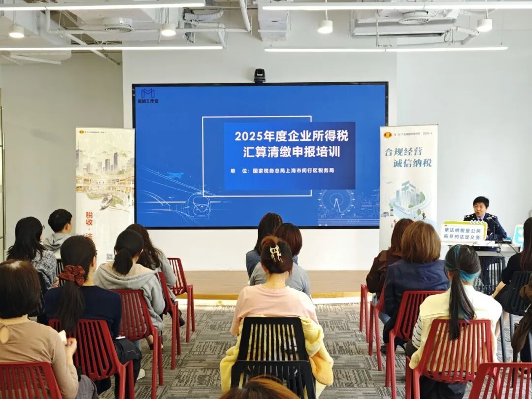 闵行区税务局走进利丰广场,开展增值税法宣传及2025年度企业所得税汇算清缴申报培训,以实际行动服务区域经济健康发展。
