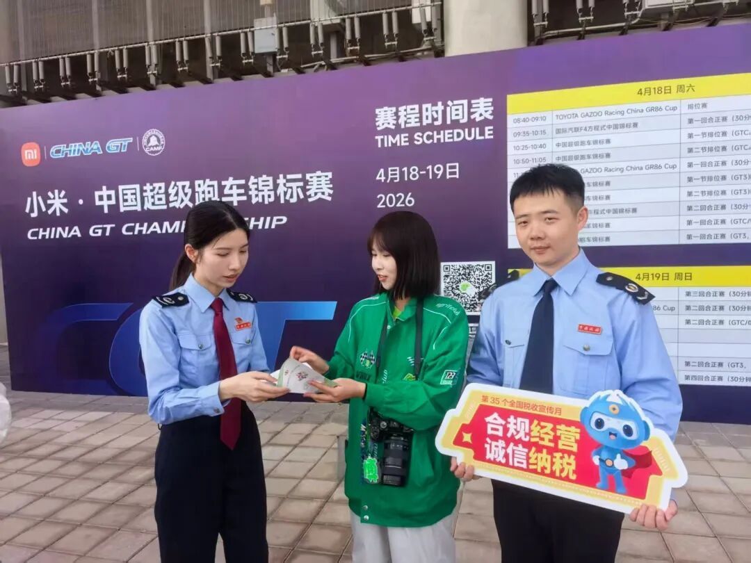 嘉定区税务局走进上海国际赛车场,向周边商户和前来观赛的市民游客宣传个税年度汇算、有奖发票规范开具和兑换等相关政策规定,现场答疑解惑、普及税法知识,引导经营主体规范用票、依法纳税,提升市民游客诚信纳税意识。