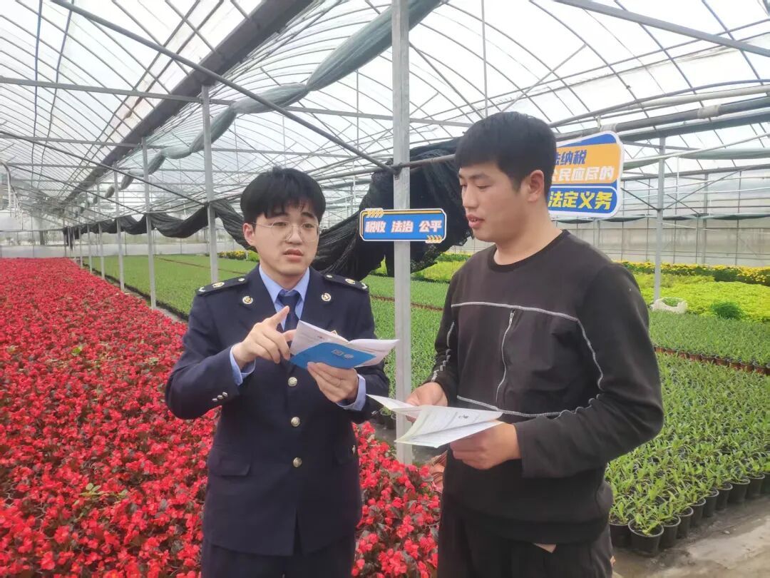青浦区税务局走进白鹤镇花卉大棚开展税收普法宣传,税务干部深入田间地头,围绕涉农税费政策、增值税法、发票开具等内容,现场解答花卉种植户在日常经营与开票申报中的涉税问题,以税力量助力特色农业发展与乡村振兴。