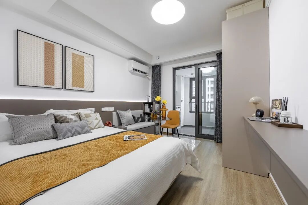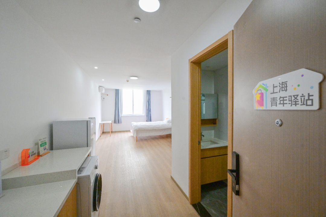 在和欣公寓5号楼,推开标有“上海青年人才驿站”的房门,崭新明亮、开阔通透的房间映入眼帘:1.5米大床、衣柜、空调、冰箱、洗衣机、独立卫浴一应俱全,配置堪比酒店标准。西部集团普陀保障房公司副总经理朱红芳介绍,今年驿站新增了热水壶和吹风机,还贴心准备了熨烫机、卷发棒、一次性耳塞等物品供青年借用。“去年入住青年中70%是女性,而且大家面试对着装都有需求,这些细节正是回应她们的实际需求。”
