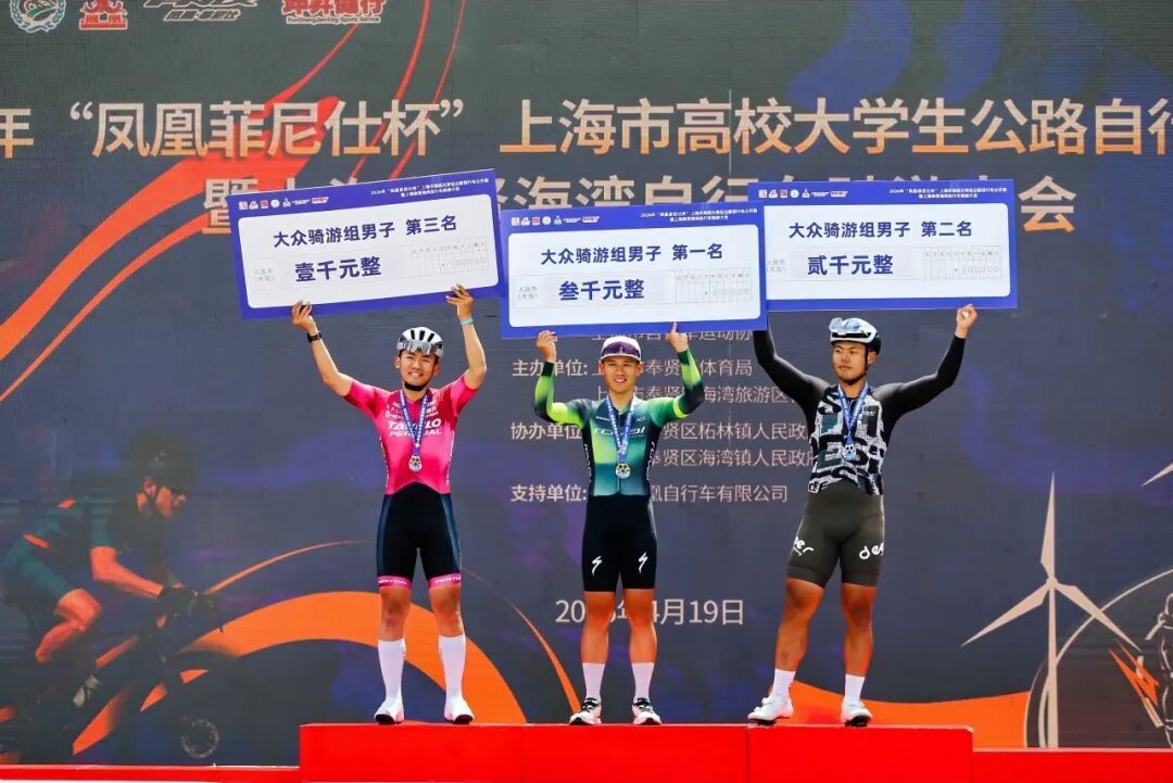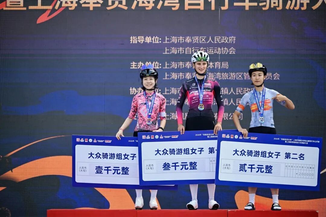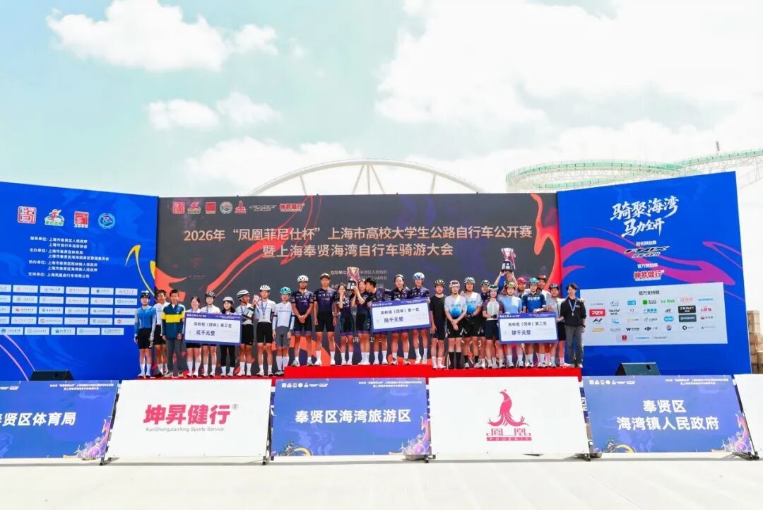 春风不息,热血不止。4月19日,2026“凤凰菲尼仕杯”上海市高校大学生公路自行车公开赛暨上海奉贤海湾自行车骑游大会在奉贤海湾旅游区渔人码头圆满落幕。 来自全国的29支高校车队、约2100名青年骑手齐聚南上海,以“骑聚海湾,马力全开”为口号,沿55公里“南上海最美赛道”乘风驰骋,在森林与海浪的交织间书写速度与激情,圆满呈现一场兼具竞技魅力与城市风采的体育文旅盛宴。 一 各组别成绩正式揭晓 赛场上,青年骑手们默契配合、全力冲刺,用汗水诠释竞技精神,展现当代大学生昂扬向上的风貌。经过严格计时与规则评定,各组别奖项悉数落定,所有完赛选手均收获成长与荣誉。 01 团体前三名 团体排名:按男子前5名+女子第1名用时总和排名。 冠军: 江汉大学喜德盛车队:8:18:53.018 亚军:上海工程技术大学队:8:22:21.111 季军: 浙江大学-超级兔子车队:8:27:19.722 02 个人成绩 个人排名:按终点通过顺序排名,共分为高校男、高校女、大众男、大众女四个组别。 个人完整成绩可扫描下方二维码,输入证件号或手机号即可查询并下载电子版完赛证书。 注:更多详细赛事成绩可前往赛事官方信息发布渠道查阅。 03 获奖信息收集 获奖选手信息登记二维码