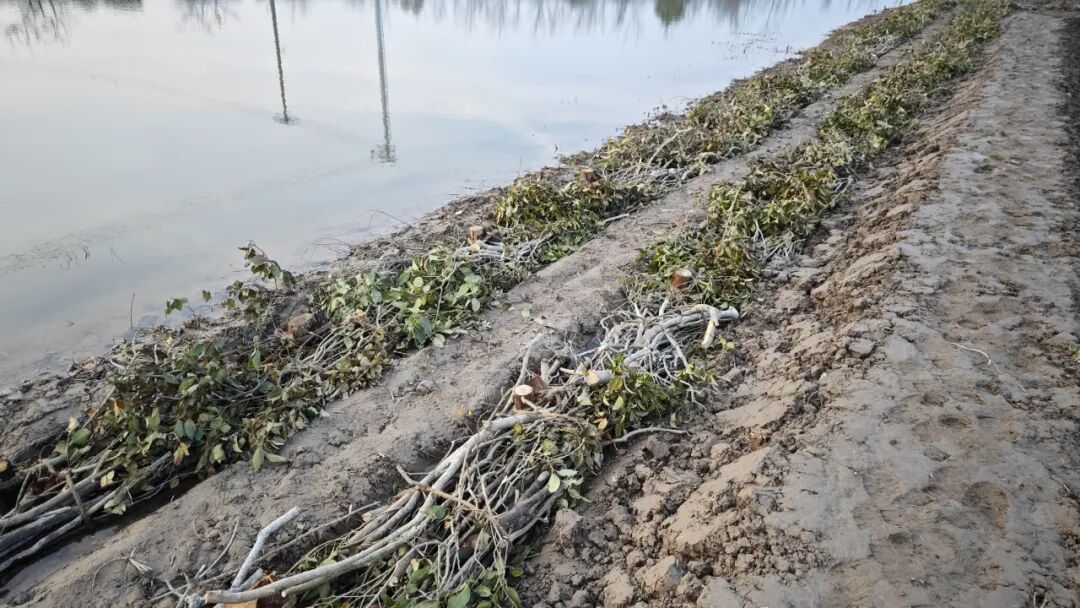 改变较为常见的墙体、桩式、石笼等人工固坡模式,漫滩沿线采用两级柴捆固坡方式,避免水土流失。