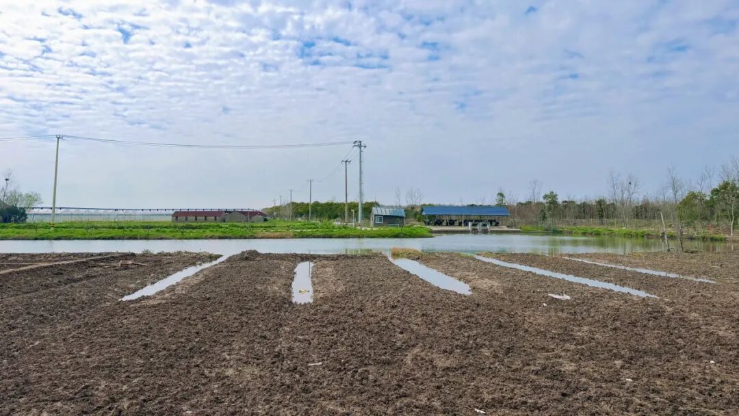 南北走向的八滧港从基地东侧湍流而过,开港北路沿八滧港自西而上,收于万禾农场的端头。开港北路西侧,临农场河,依然保留着漫滩湿地农田的底色。这里的条田与开港北路垂直,条田间是面向农场河自然开敞的沟渠。