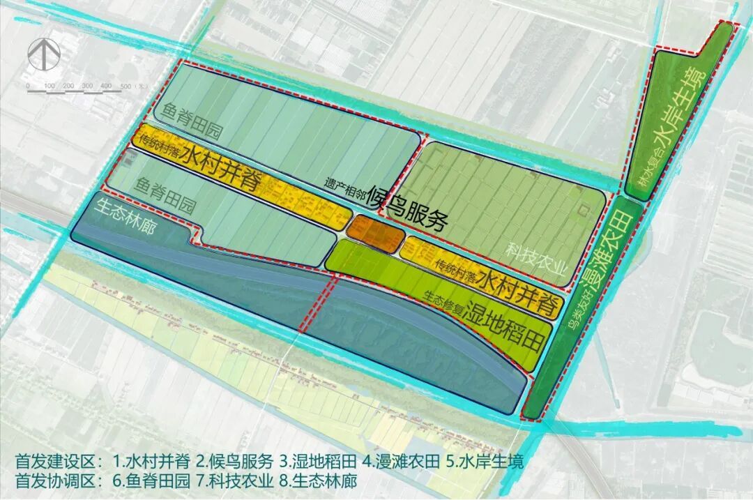 坚持生态优先,人鸟友好,贯彻基于自然的解决方案(NbS),通过营田、理水、育林、优村一系列手法,让田水、林廊、村落成为万鸟栖居的温柔港湾,则是富圩单元特色风貌保护传承的重要导向。