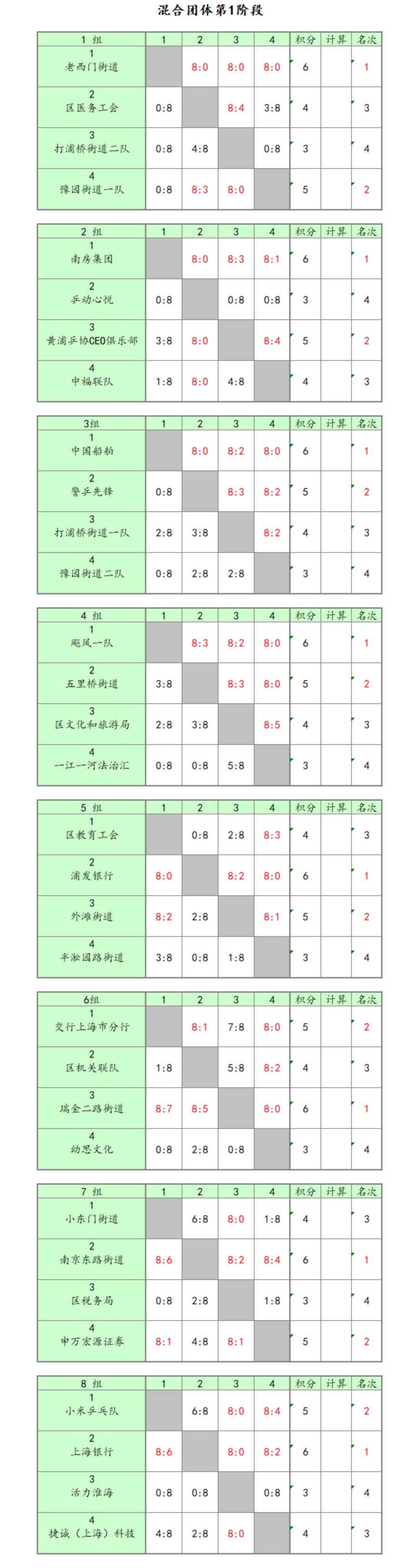 4月19日,上海乒乓球嘉年华“黄浦我来乒”混合团体冠军联赛结束了小组赛的争夺。各路选手在黄浦区工人体育馆挥拍上阵、奋勇争先,精彩对决接连上演。最终,晋级队伍产生如下: