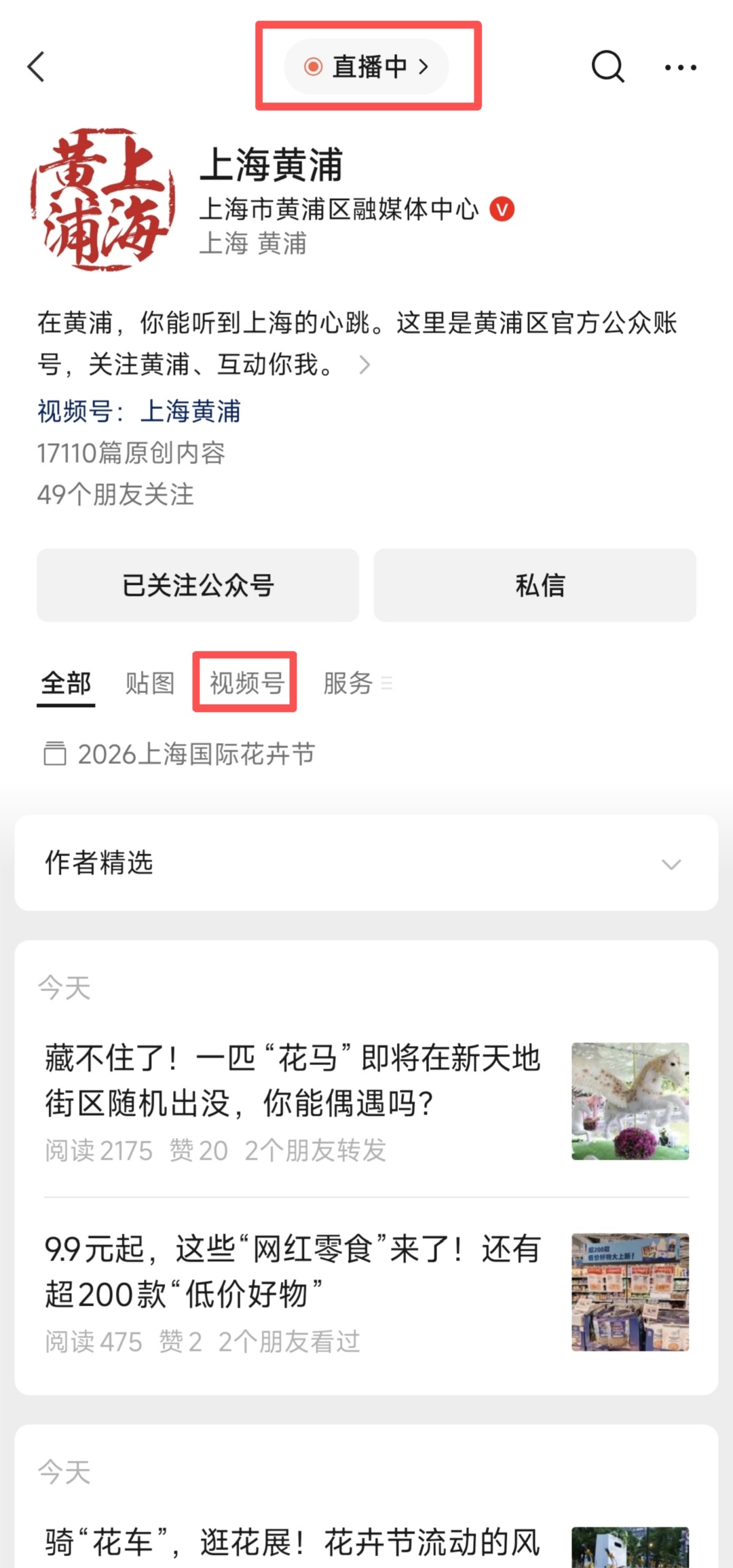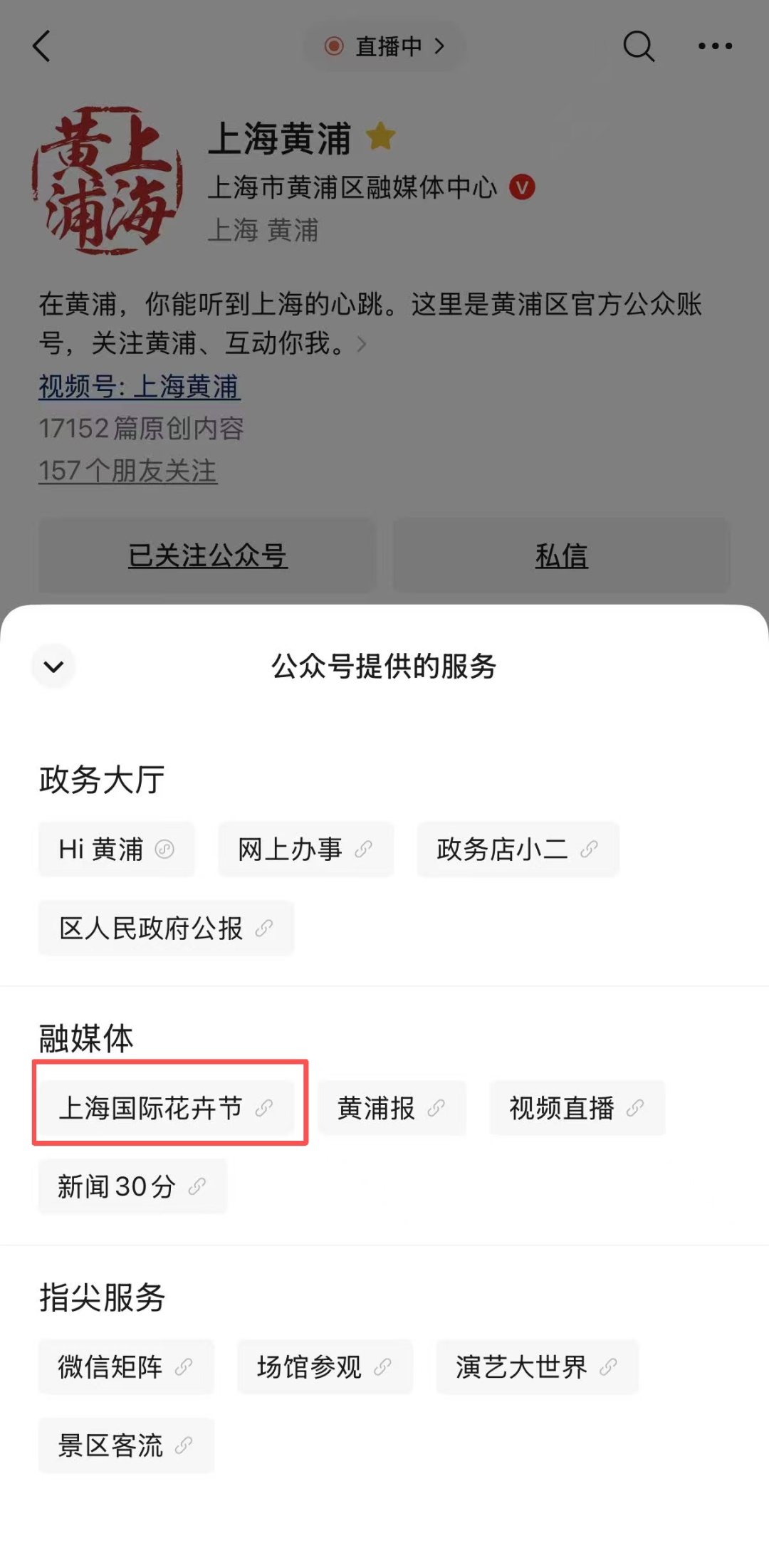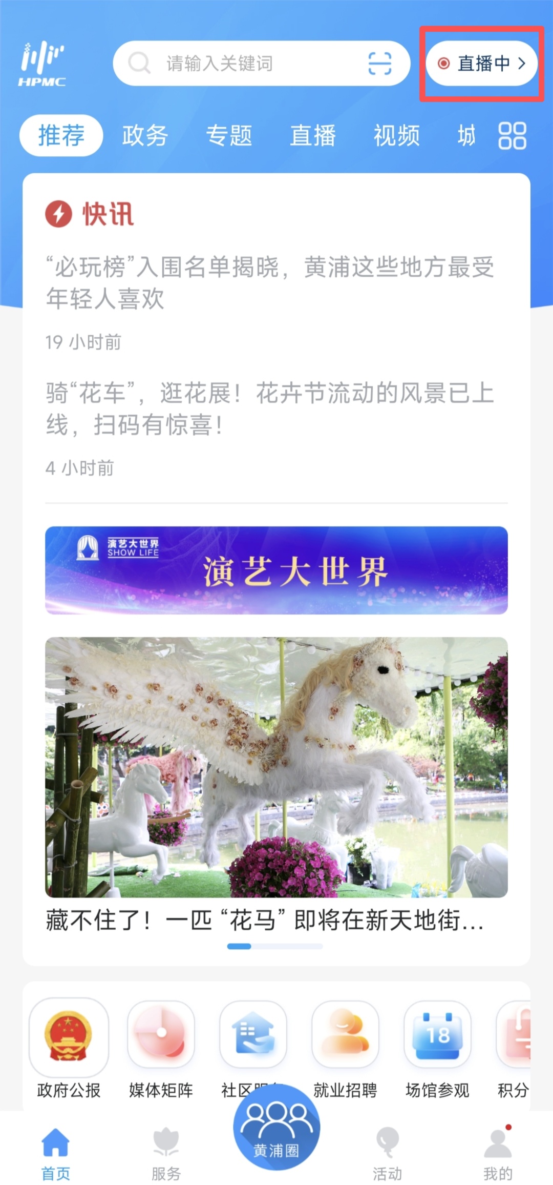 打开“上海黄浦”App 点击右上角“直播中”按钮
