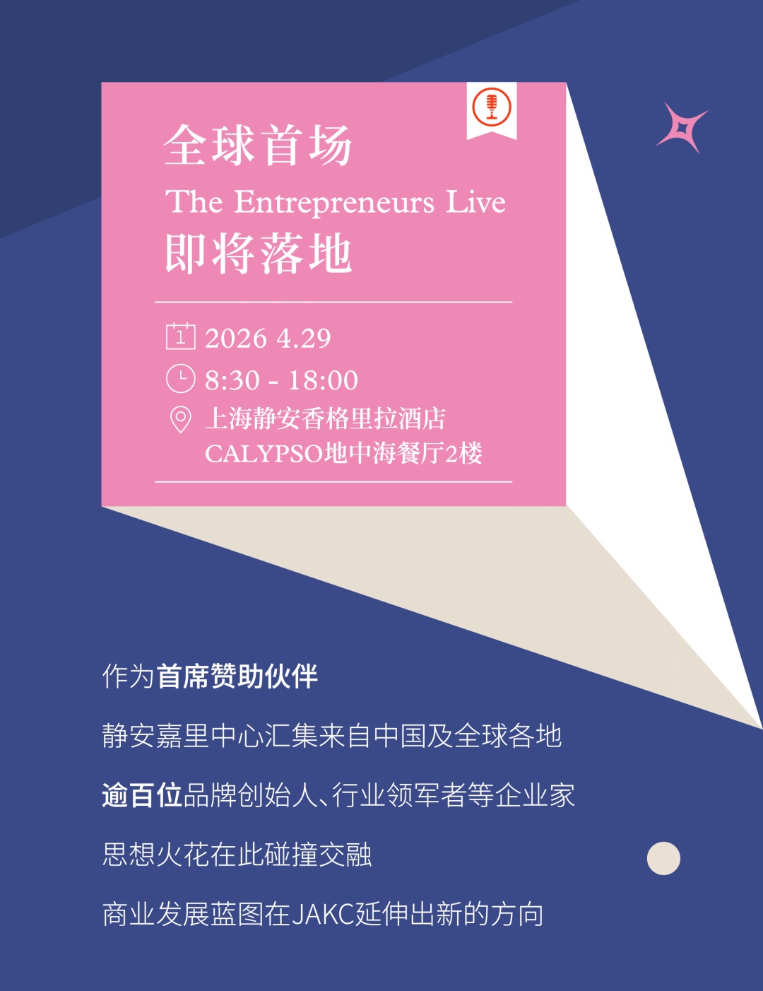 4月下旬,全球首届《The Entreprenuers Live》即将启幕。