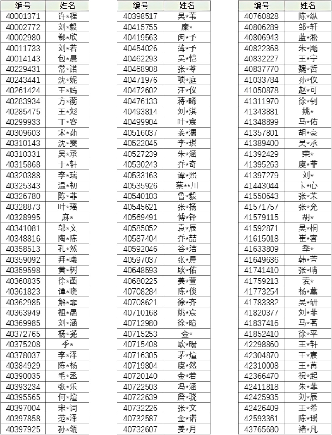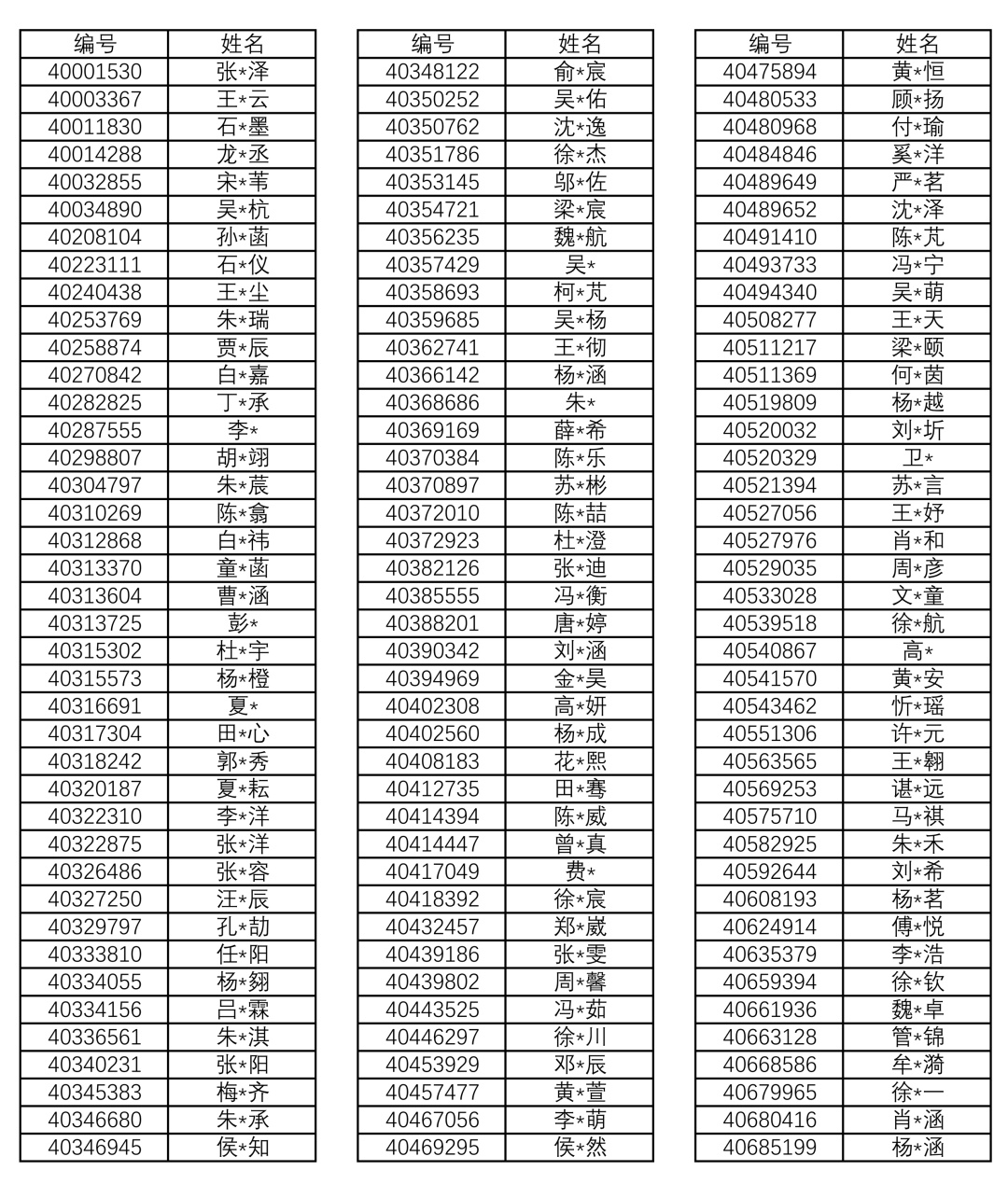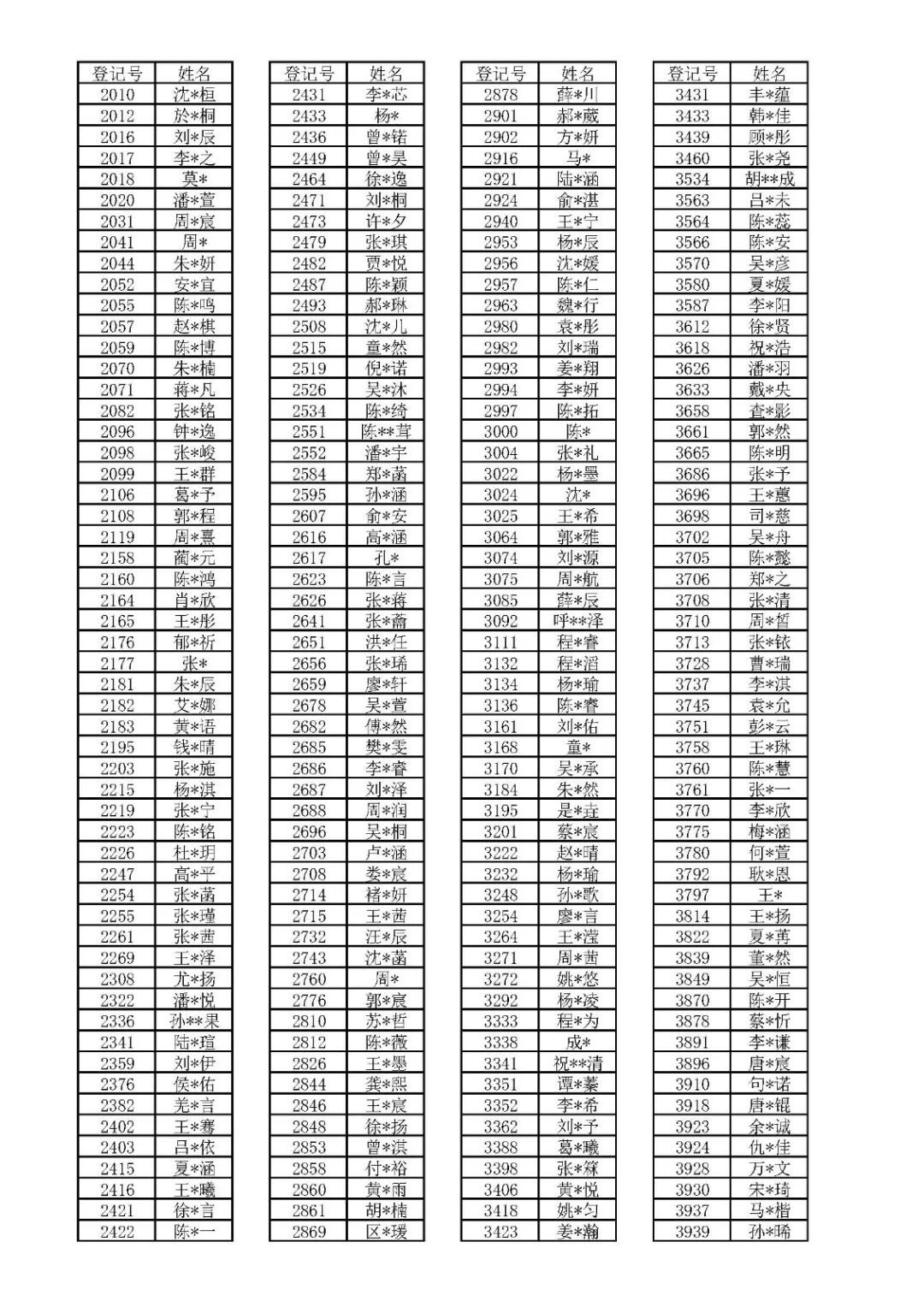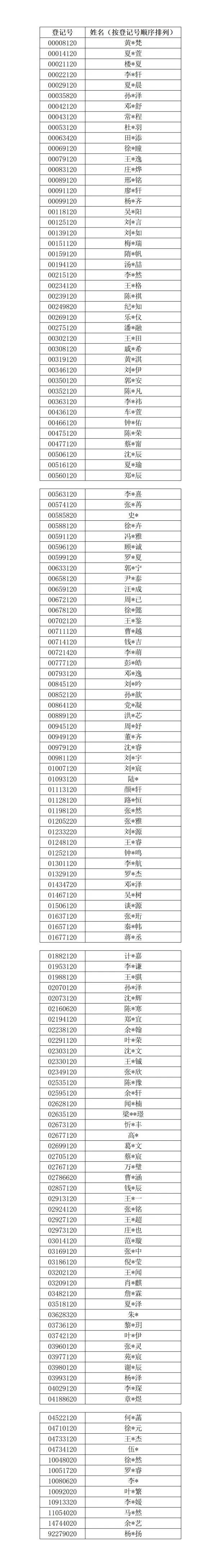 上实初中招生录取名单公示