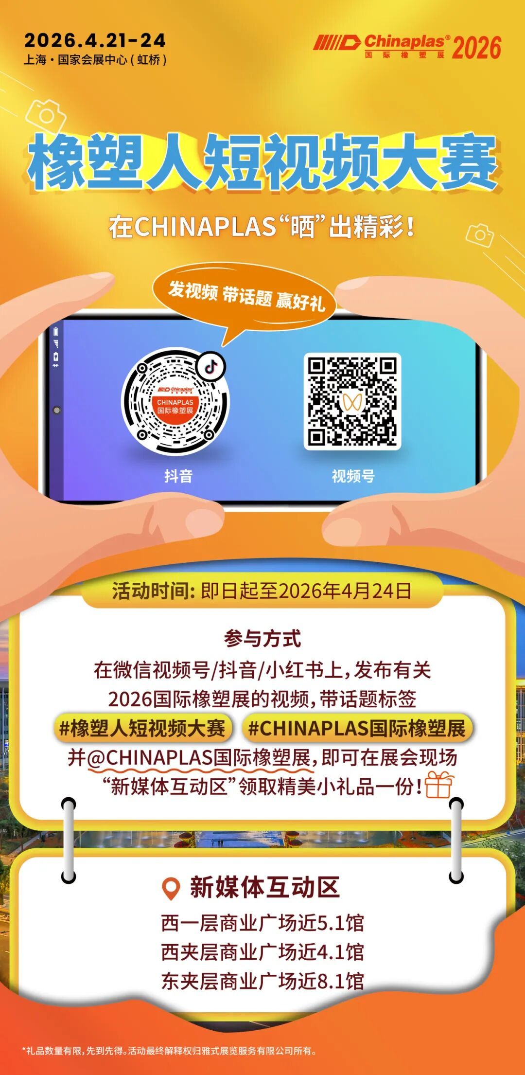 逛展时,记得随手拍下“好玩、有趣、硬核”瞬间(机器人、飞行汽车、创新材料…),参与“橡塑人短视频大赛”,在新媒体互动区领取精美好礼!