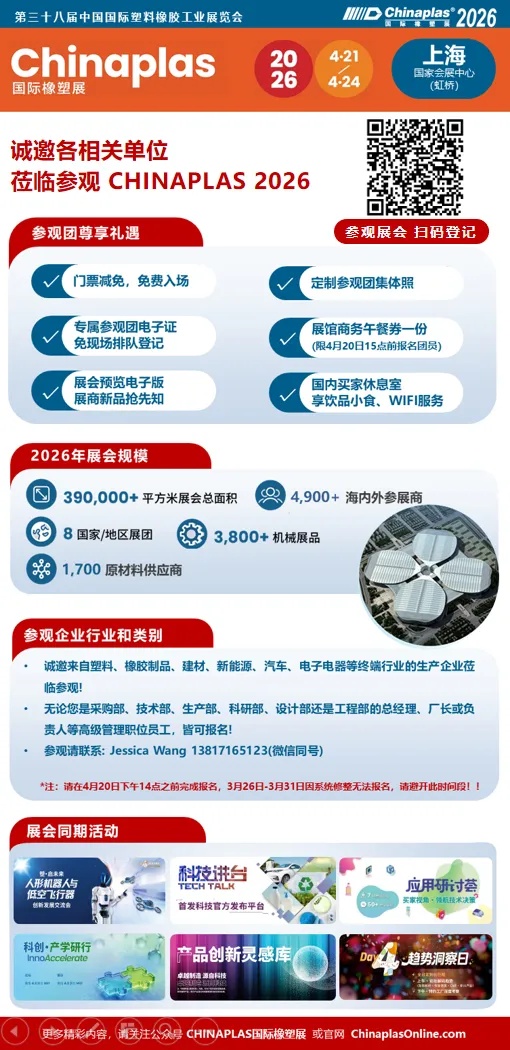 扫码进入CHINAPLAS官网,可以查看并下载展会资料,如“参观指南”、“展会预览”、“技术指南”等。