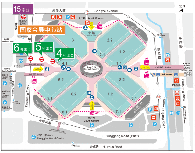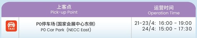 出租车上客点:P0停车场(国家会展中心东侧)。