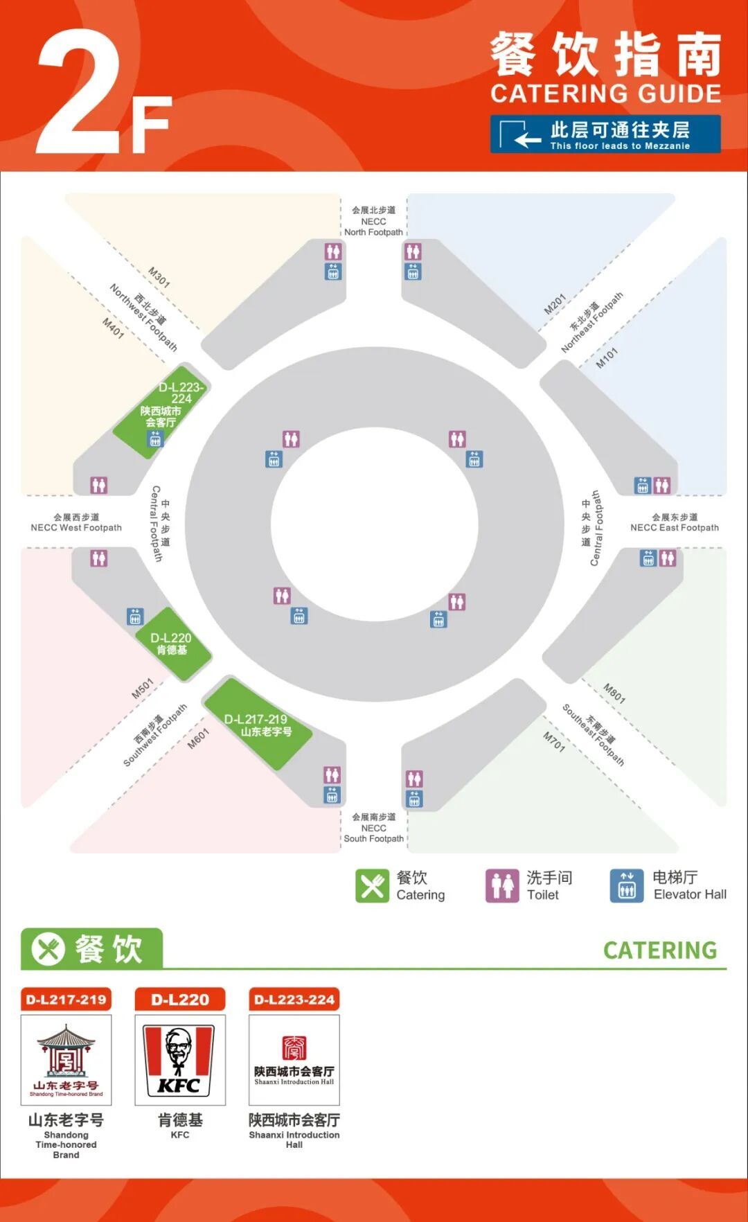 展会首三天(4月21-23日),展馆部分餐饮点将营业至20:00。餐厅座位有限,先到先得。