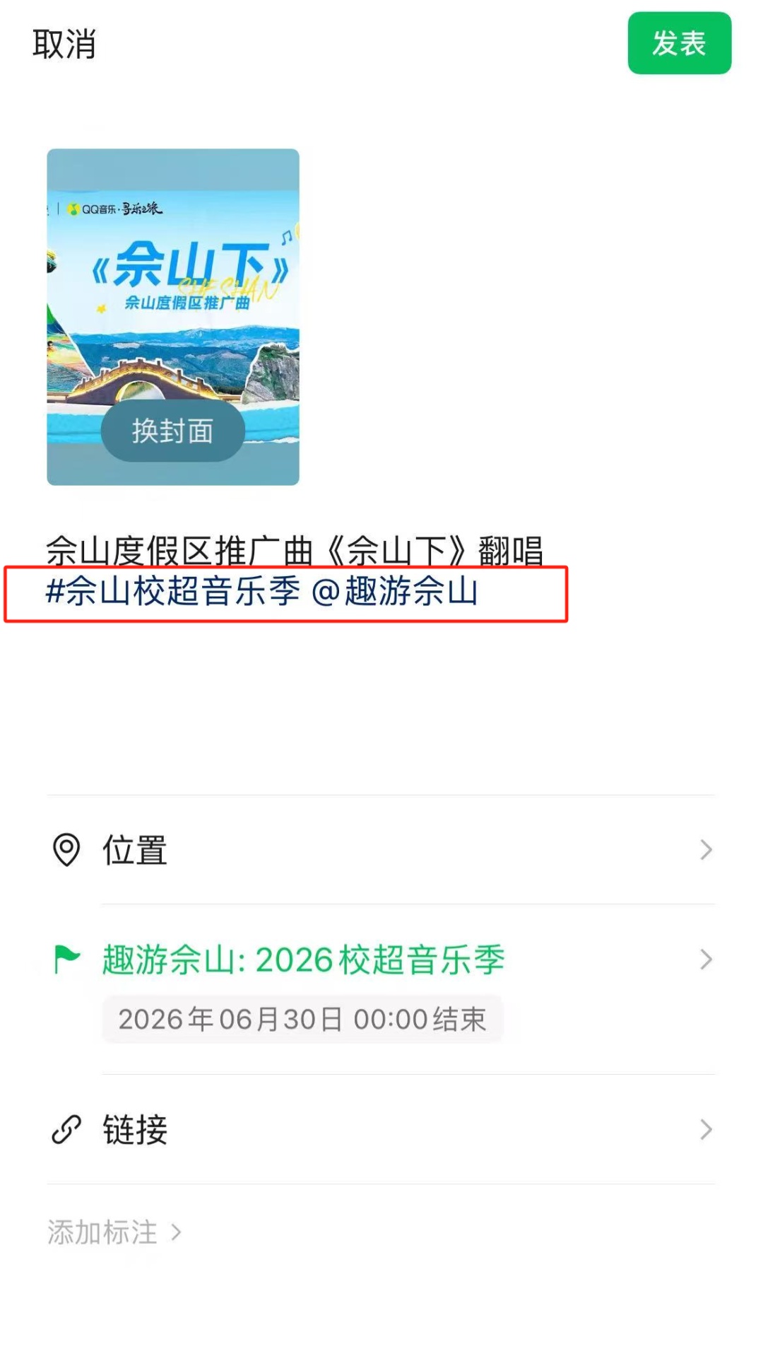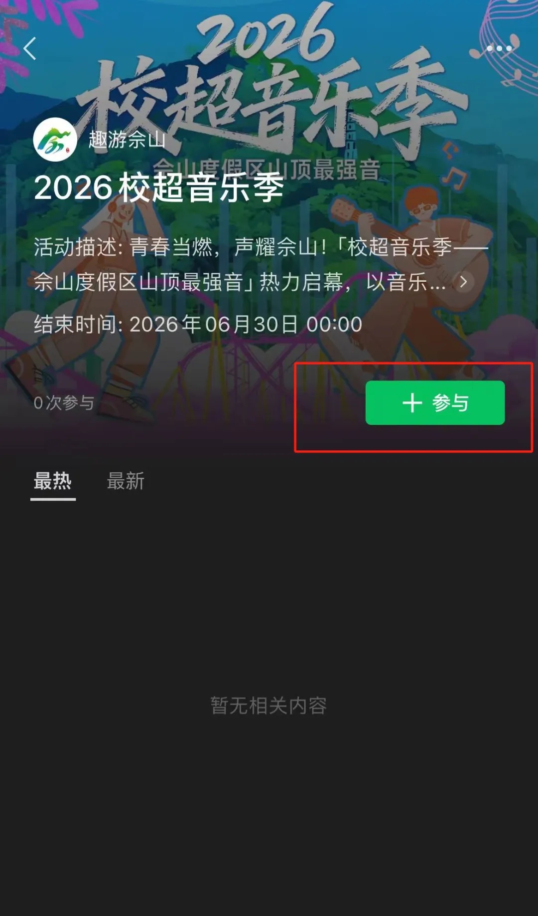 文案中@趣游佘山官方账号,并带上#佘山校超音乐季主话题,即可完成报名参与。