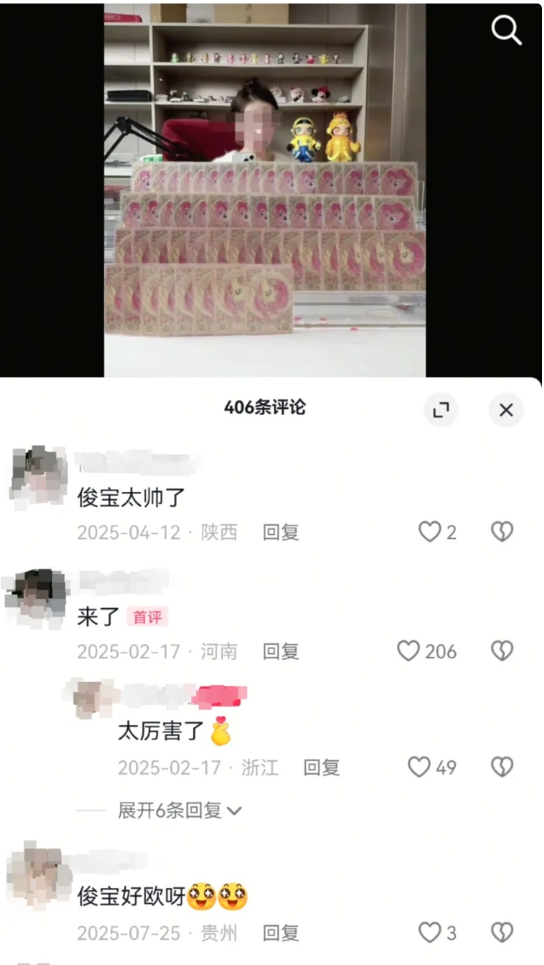 博主为小梦发布拆卡视频,评论区的称赞(某账号截图)