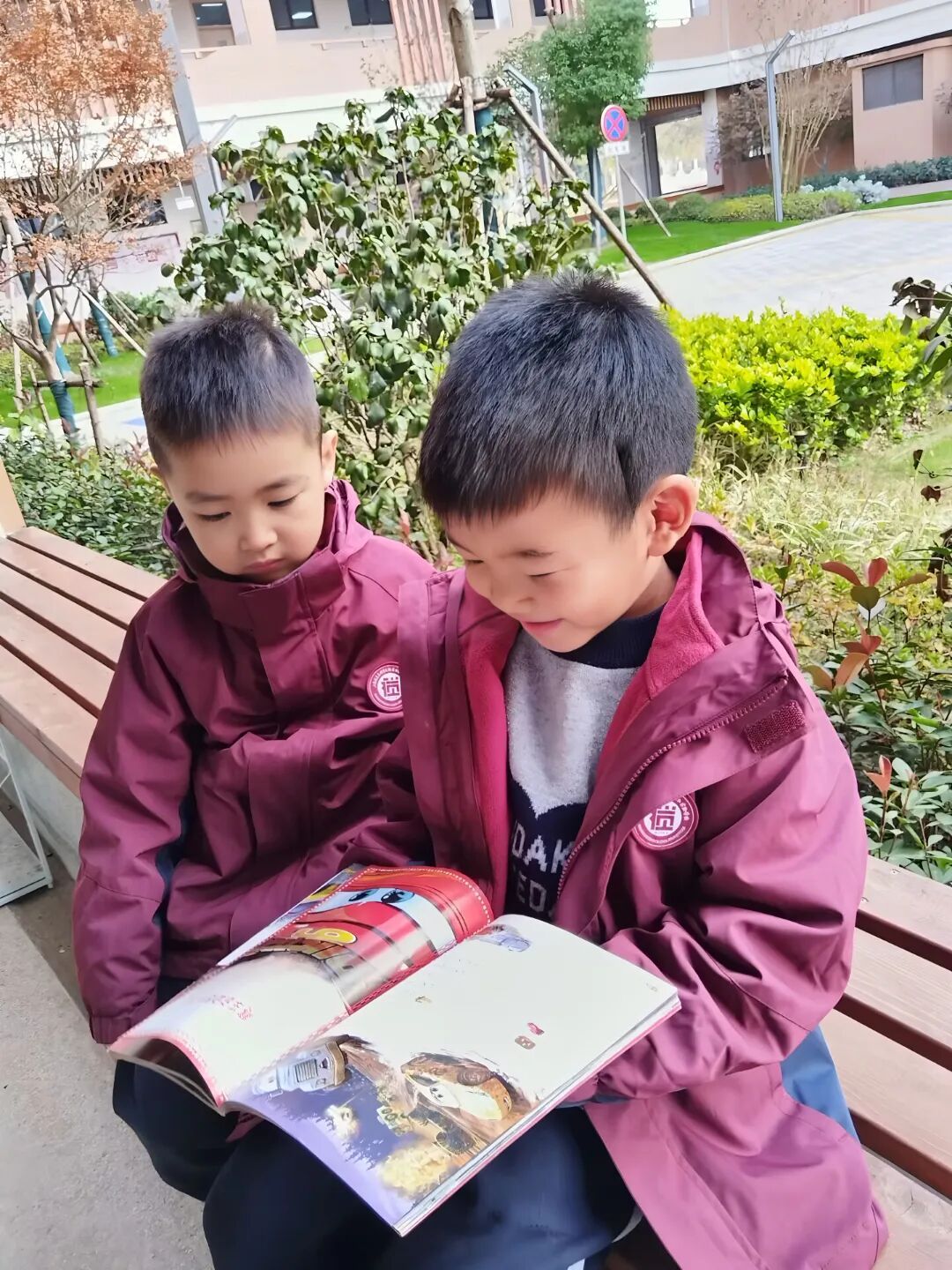 在视觉附校门口,有一处“悦憩港湾”。几个孩子正安静地翻阅手中的书,对于偶尔“被晚接”的一年级学生来说,这里不是等待的焦虑,而是“还想再晚一点”的阅读时光。