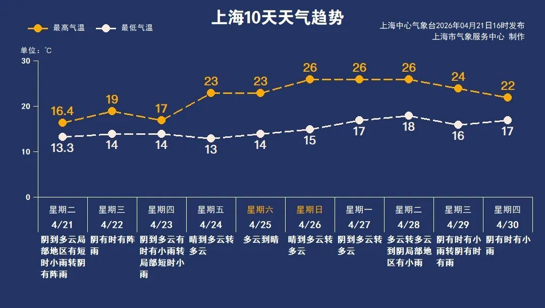 周四雨水减弱,气温仅有14—17℃,体感还是偏凉。周五起天气转晴,气温稳步回升,到了周日和下周一最高气温升至26℃附近。昼夜温差重新拉大,早晚凉,中午暖,大家注意合理着装。下周三前后申城还将有一次明显的降水过程,提醒大家关注临近预报。