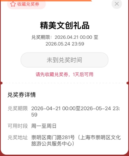 奖品领取:崇明区南门路281号(文旅公共服务中心)